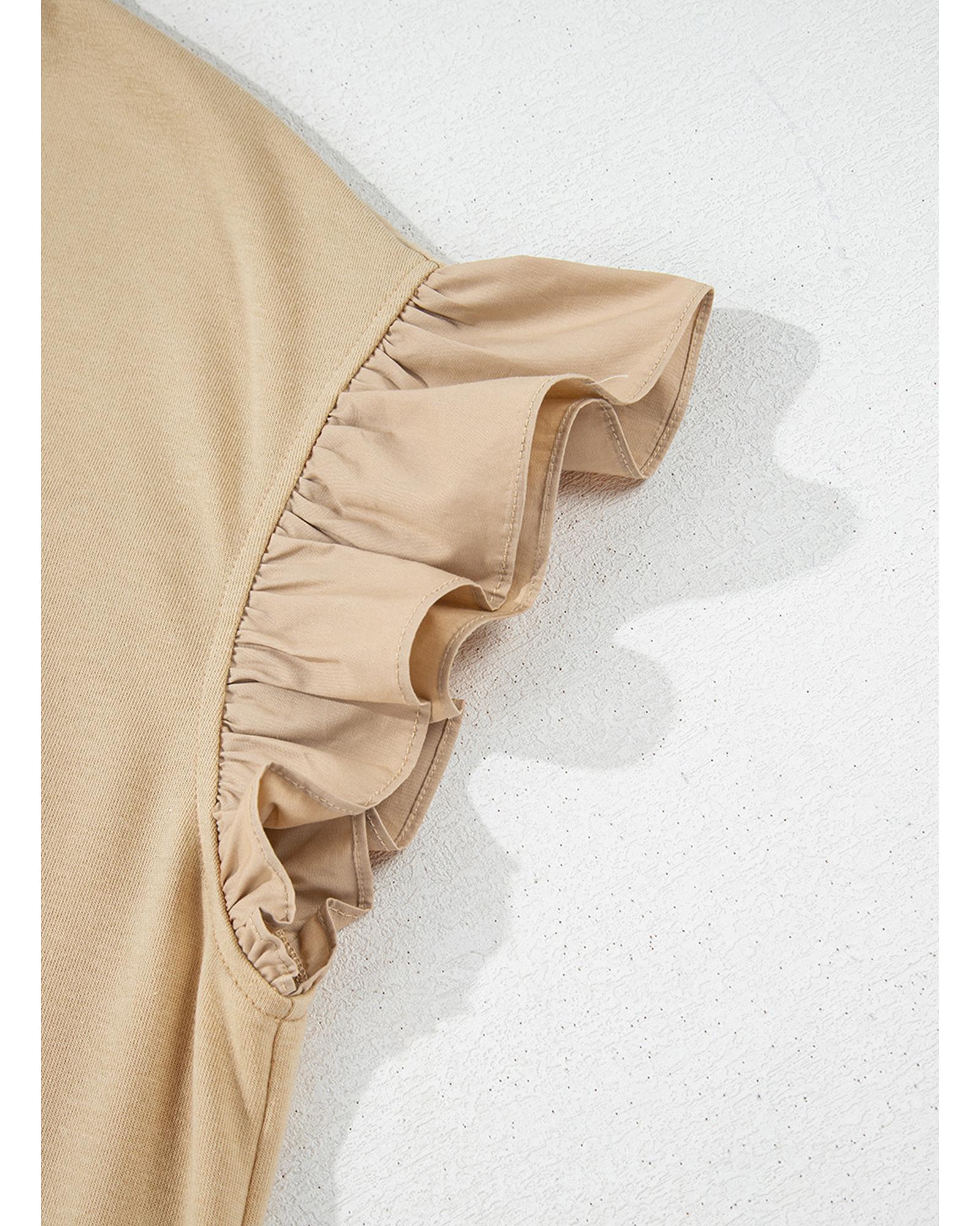 Parchment Ruffled Short Sleeve Bowknot Applique Crew Neck Plus Size Top – 2X