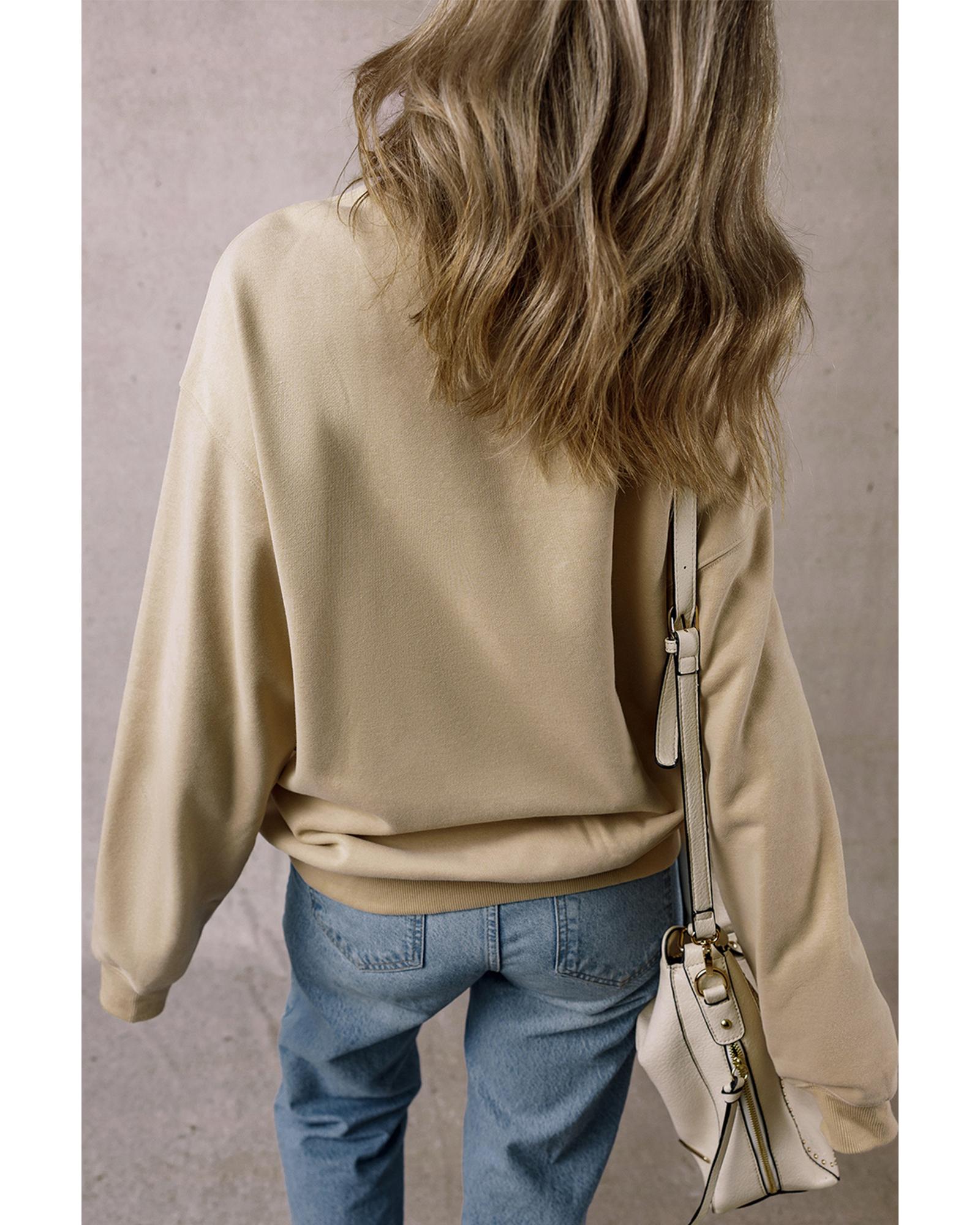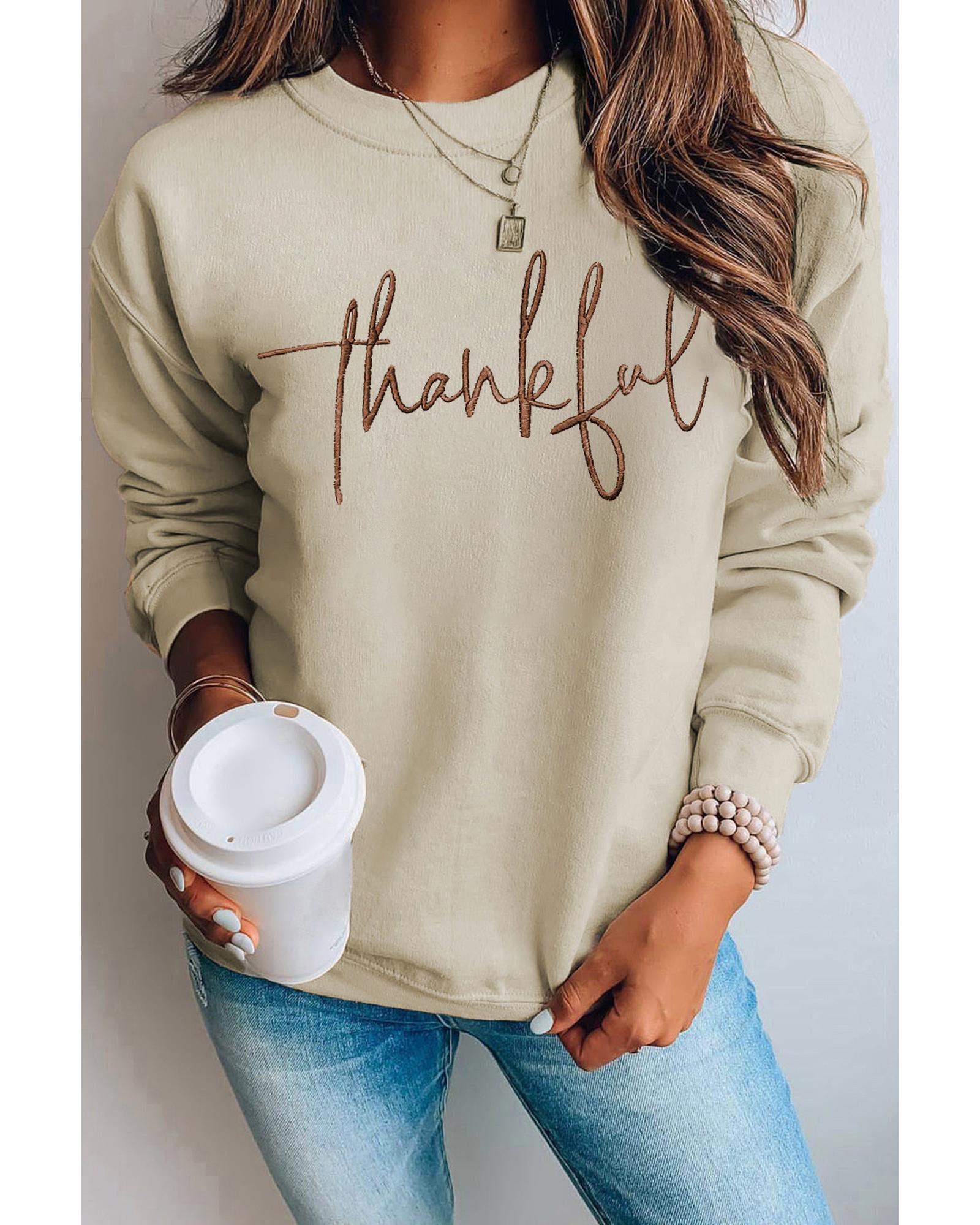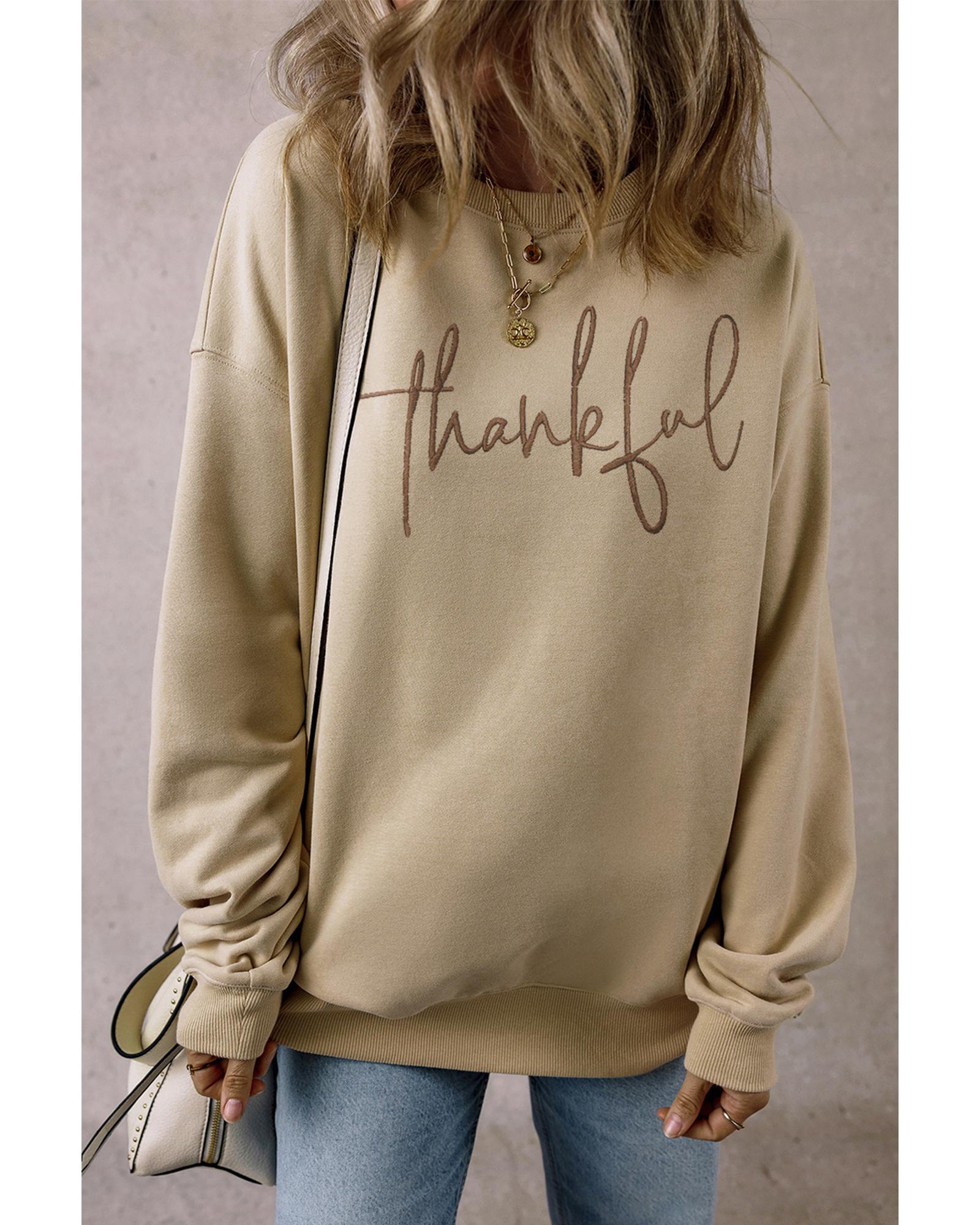 Parchment thankful Embroidered Drop Shoulder Pullover Sweatshirt – M