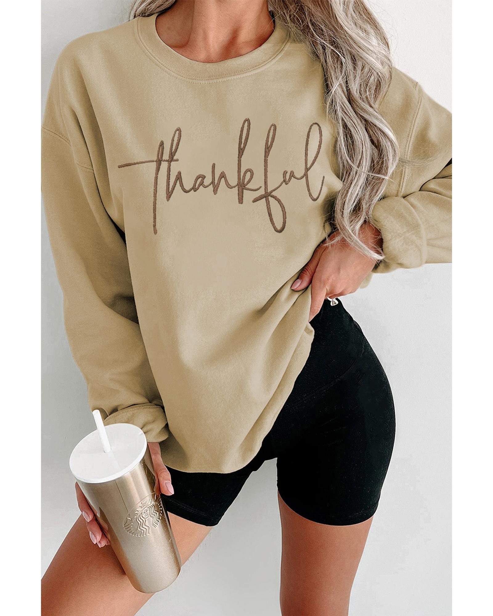 This embroidered drop shoulder pullover sweatshirt features a simple yet stylish design, perfect for expressing gratitude and suitable for occasions like Thanksgiving Day. Its relaxed fit and classic crew neck provide a laid-back look that pairs easily with jeans or leggings. Made from high-quality materials, it offers maximum comfort and durability.