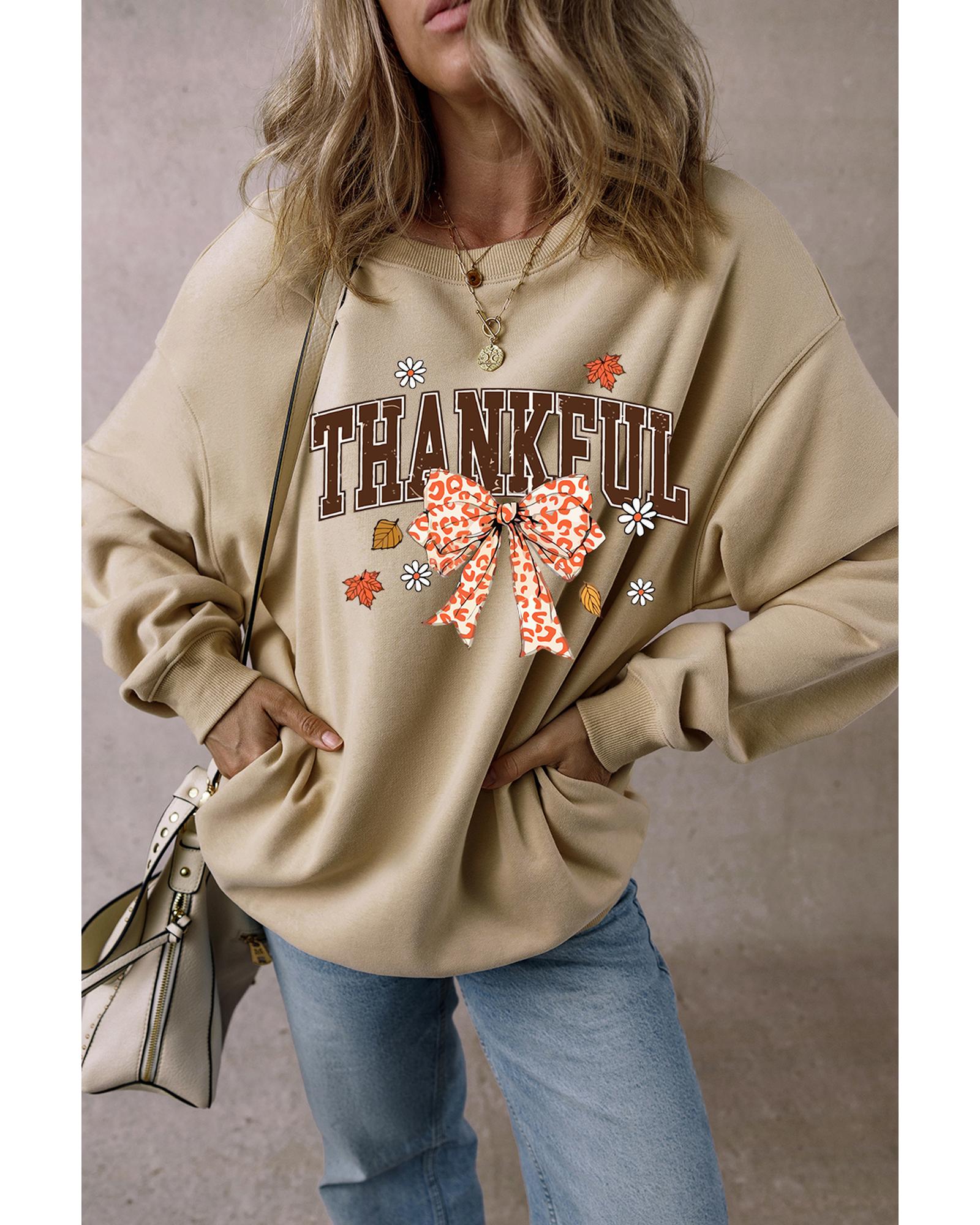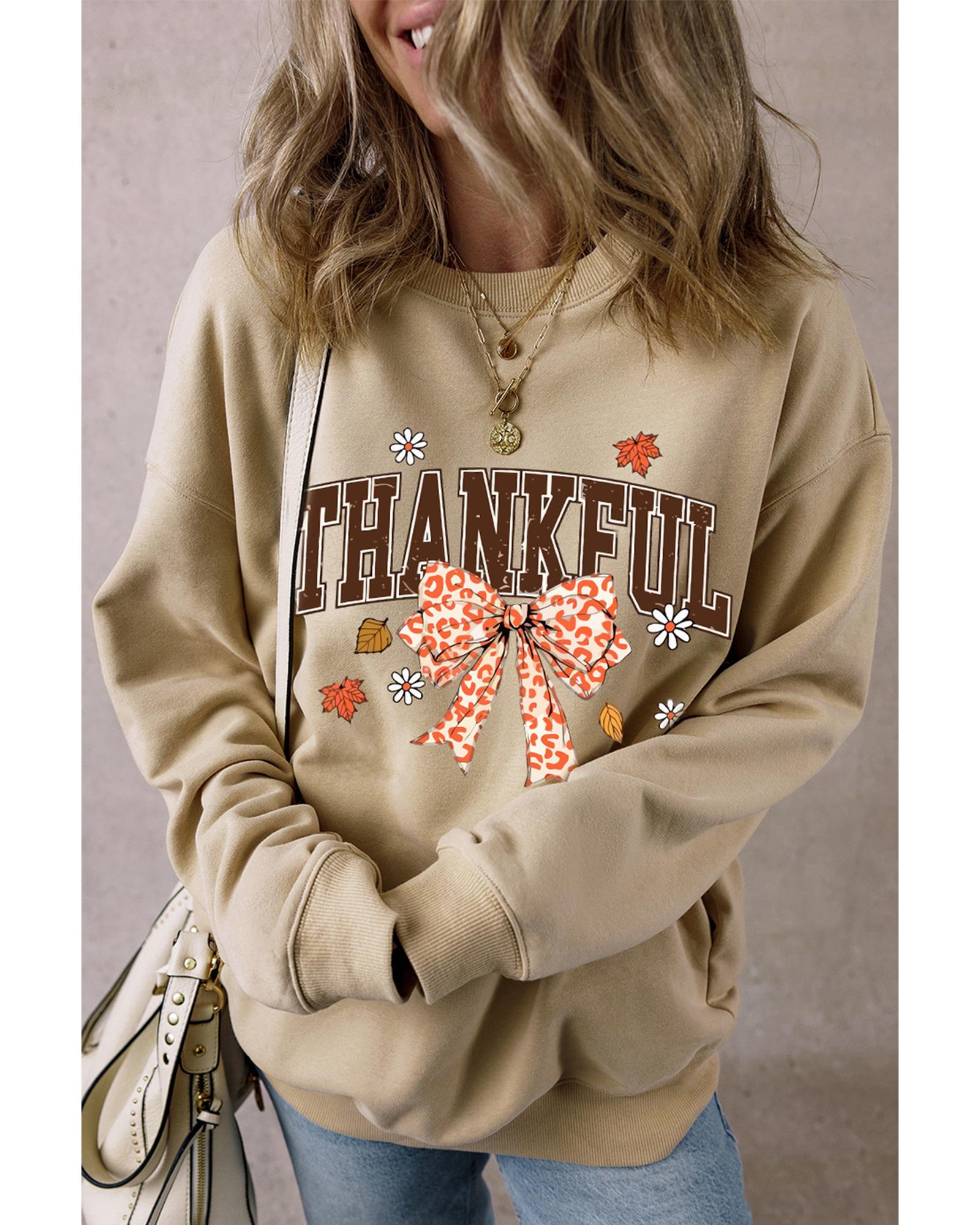 Parchment THANKFUL Leopard Bow Fall Vibe Graphic Sweatshirt – M