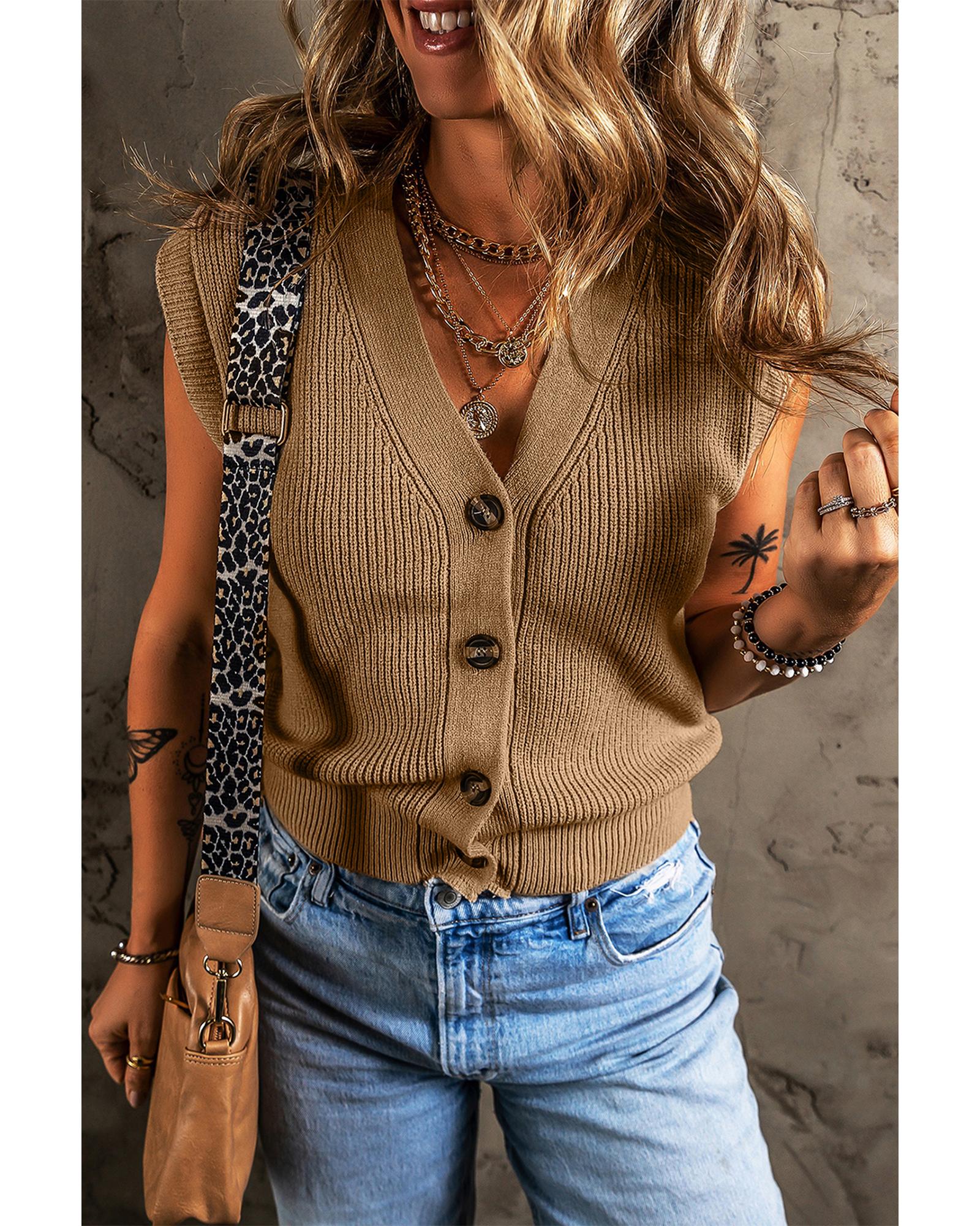 Parchment V Neck Buttoned Front Sweater Vest – L