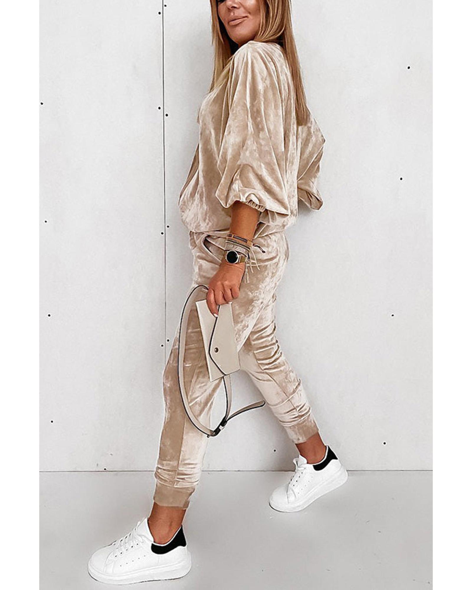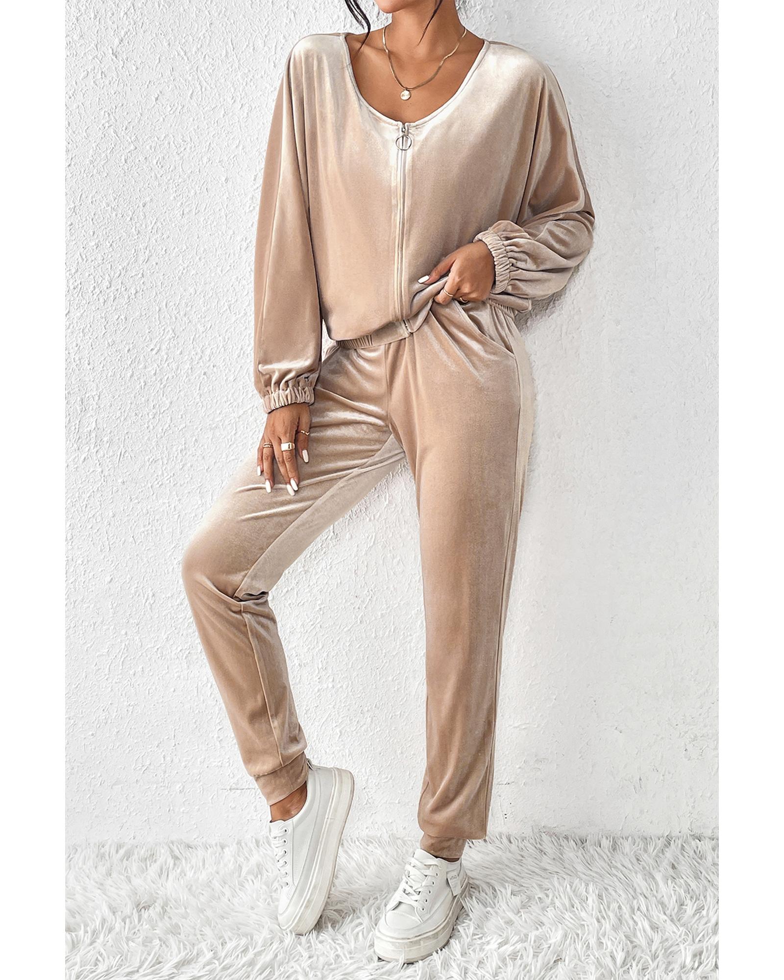 Parchment Velvet Zipped Top and Joggers Two Piece Set – S