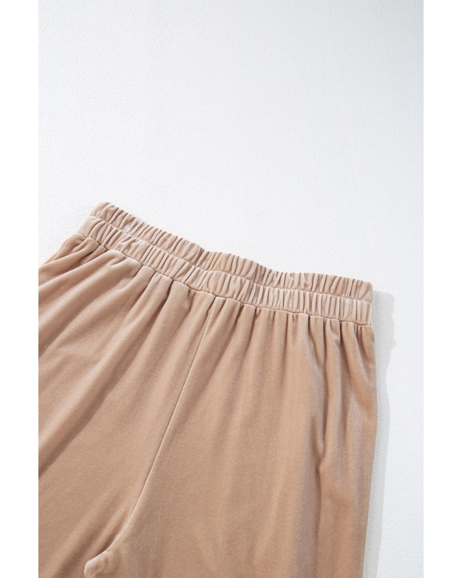 This two-piece set combines a zipped top and joggers, crafted from soft velvet fabric to provide both comfort and style. Designed with a trendy fitted look, it is suitable for both men and women, making it a versatile addition to any wardrobe.