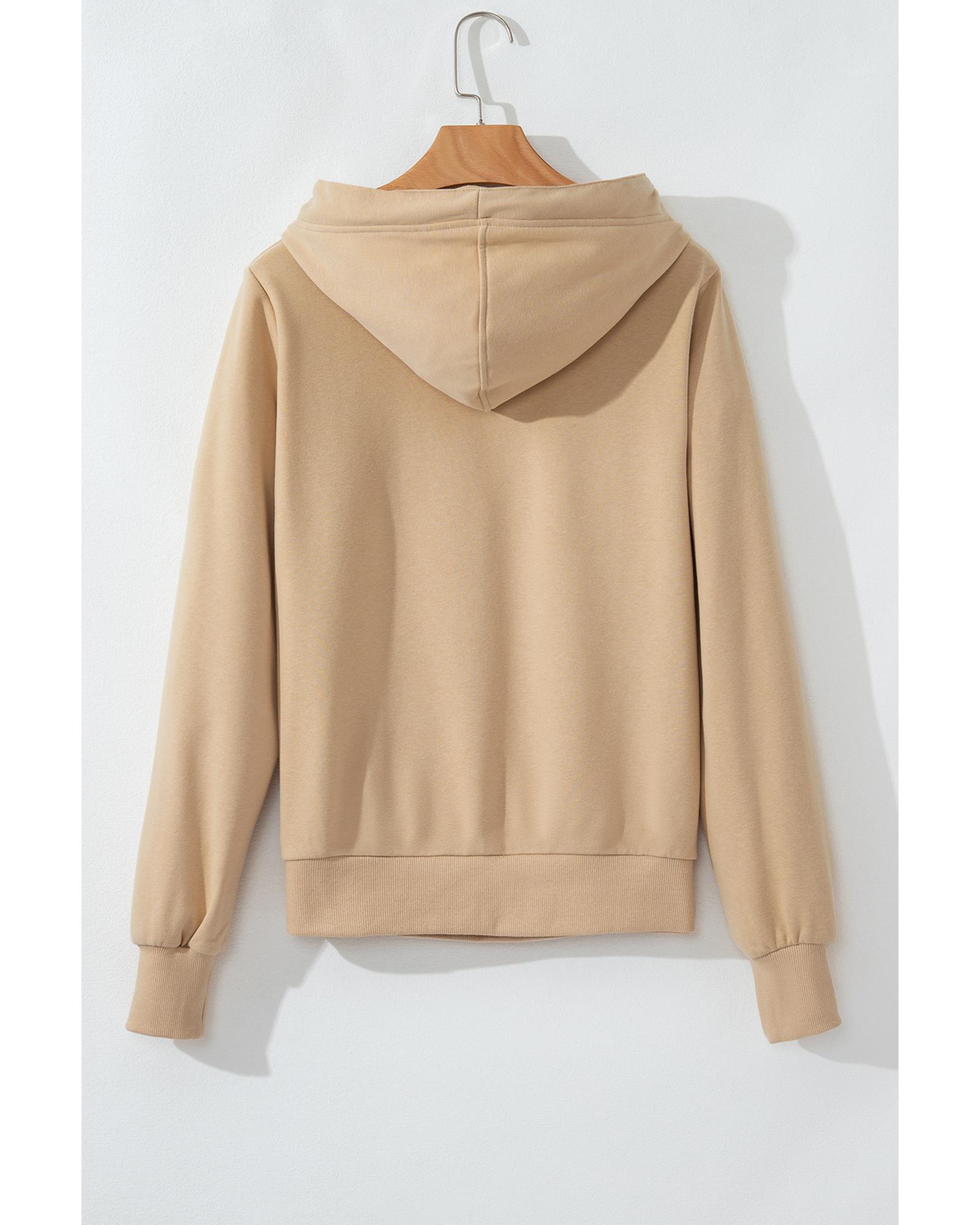 This hoodie features a trendy fitted design with a comfortable and stylish look. It is versatile and easy to pair with various outfits, making it suitable for casual wear. The hoodie includes practical details such as a zipped pocket and an adjustable drawstring for a customized fit.