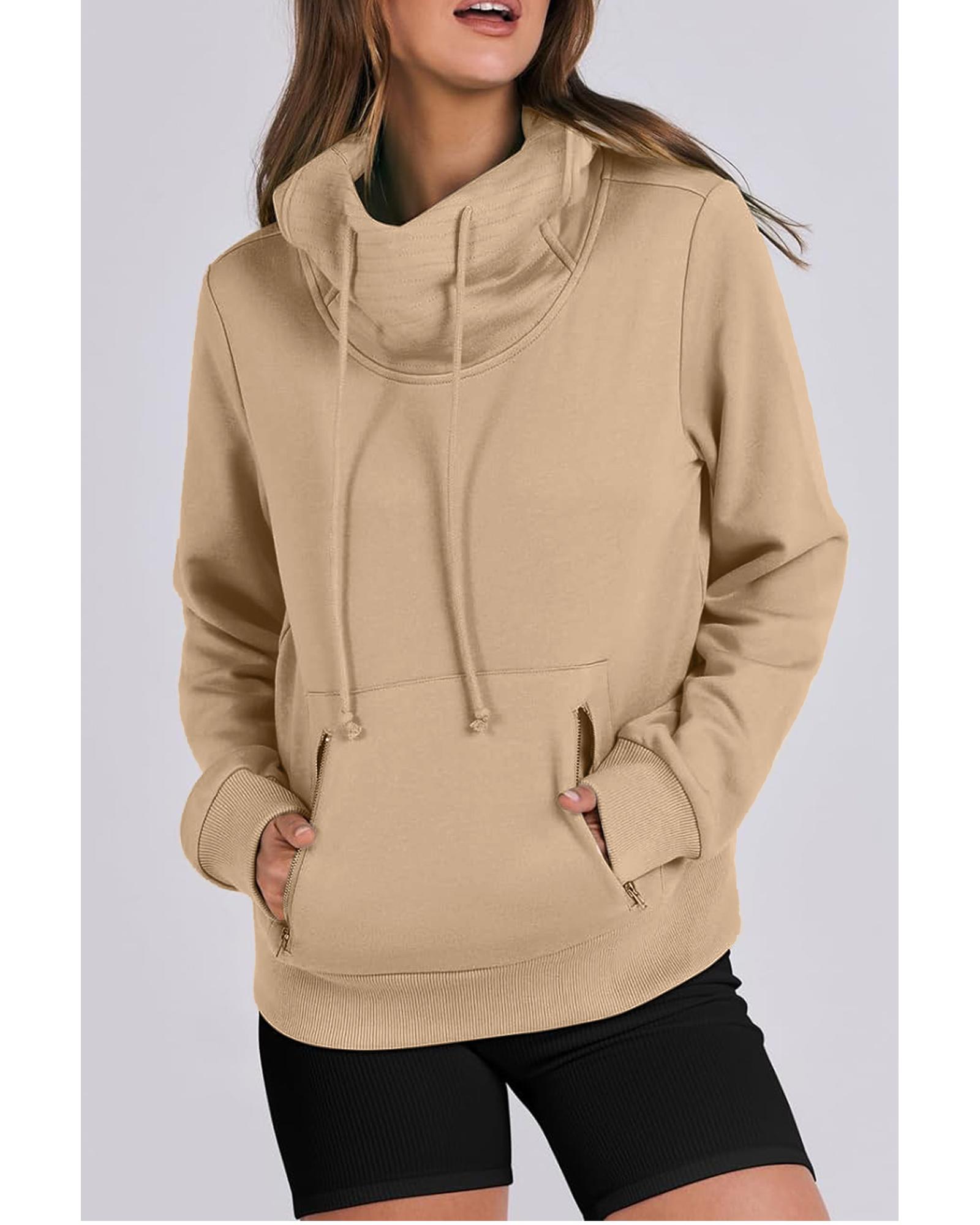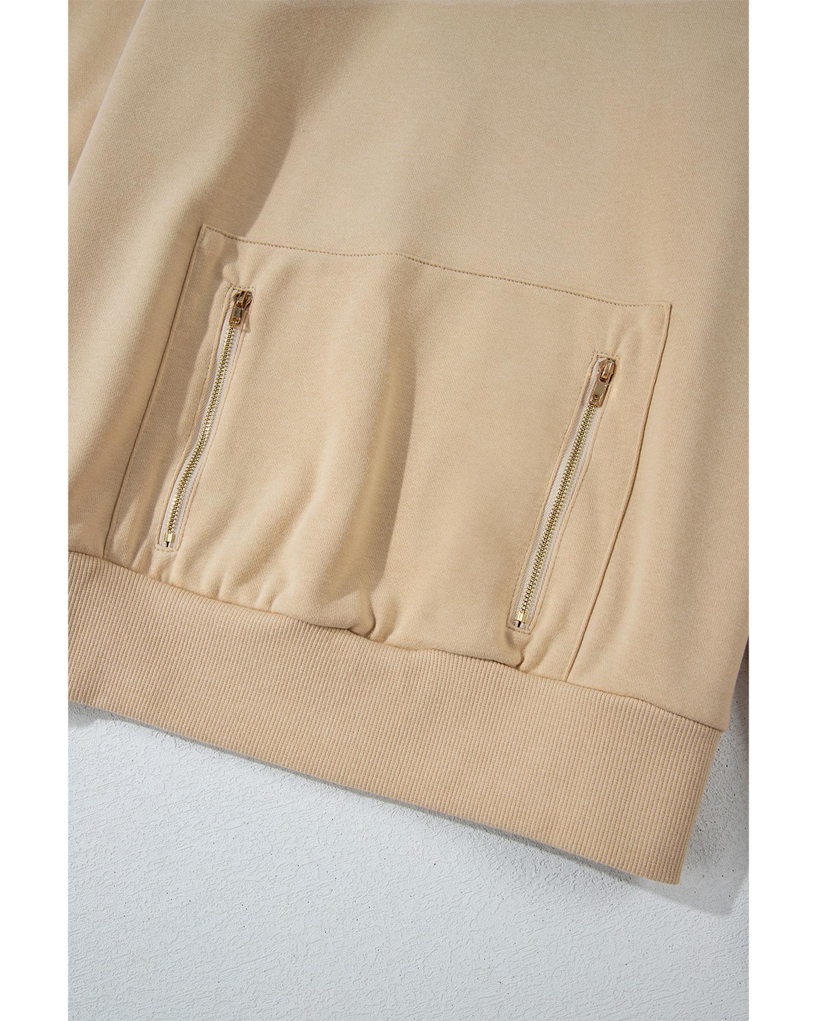 Parchment Zipped Pocket Cozy Drawstring Hoodie – S