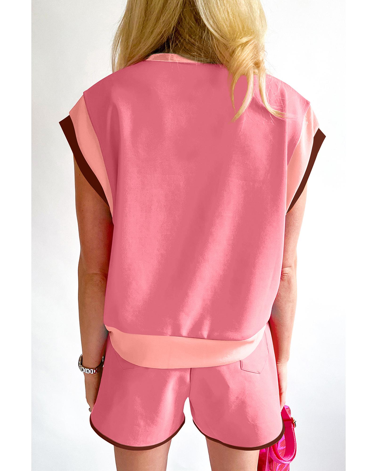 This stylish cap sleeve tee and shorts set offers a trendy and comfortable look suitable for daily wear. Designed with a relaxed fit, it combines fashion and casual comfort effortlessly. The set features a colorblock design with contrast trim, making it a versatile addition to your wardrobe.
