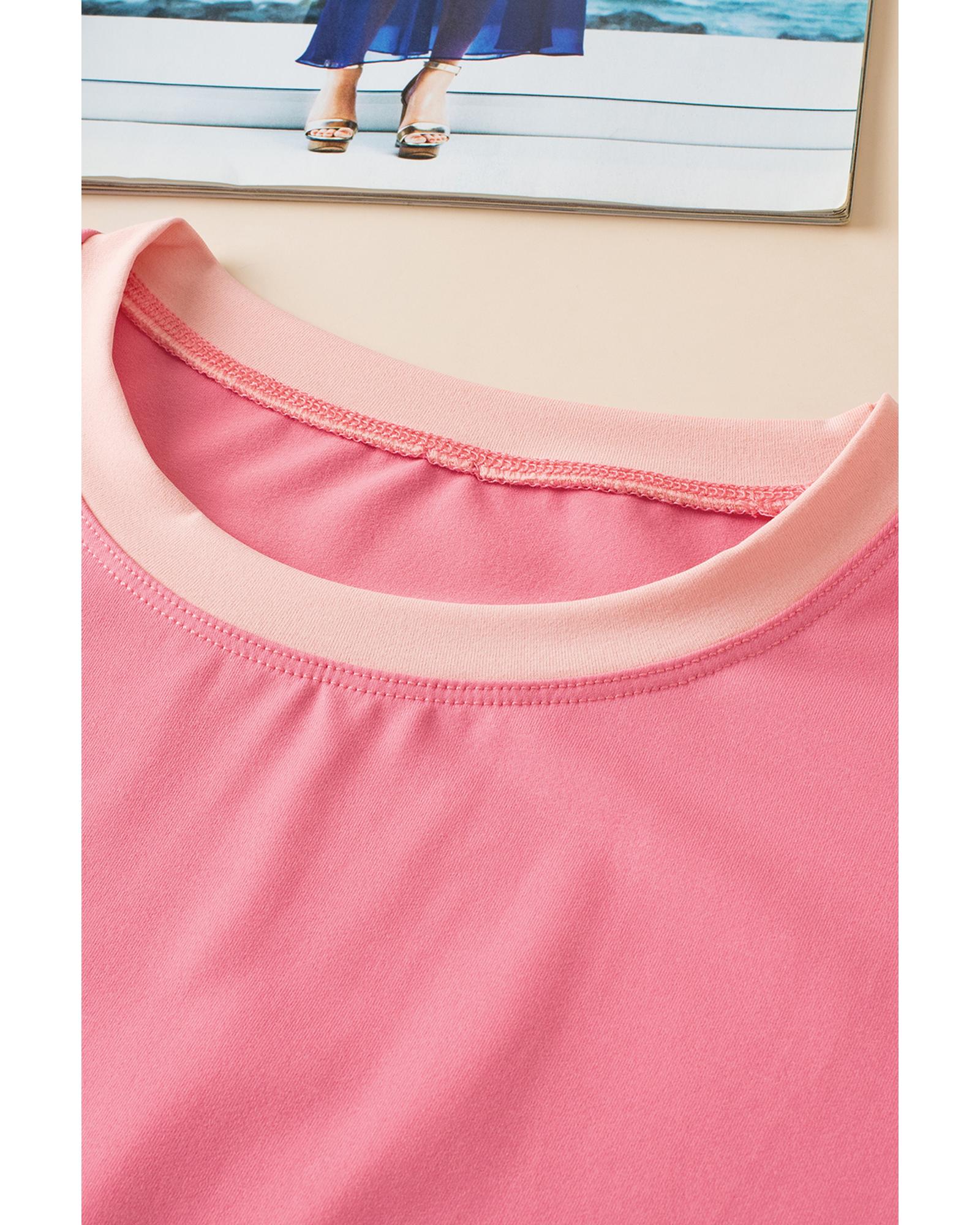 This stylish cap sleeve tee and shorts set offers a trendy and comfortable look suitable for daily wear. Designed with a contrast trim colorblock detail, it combines fashion with ease of movement, making it perfect for casual occasions.