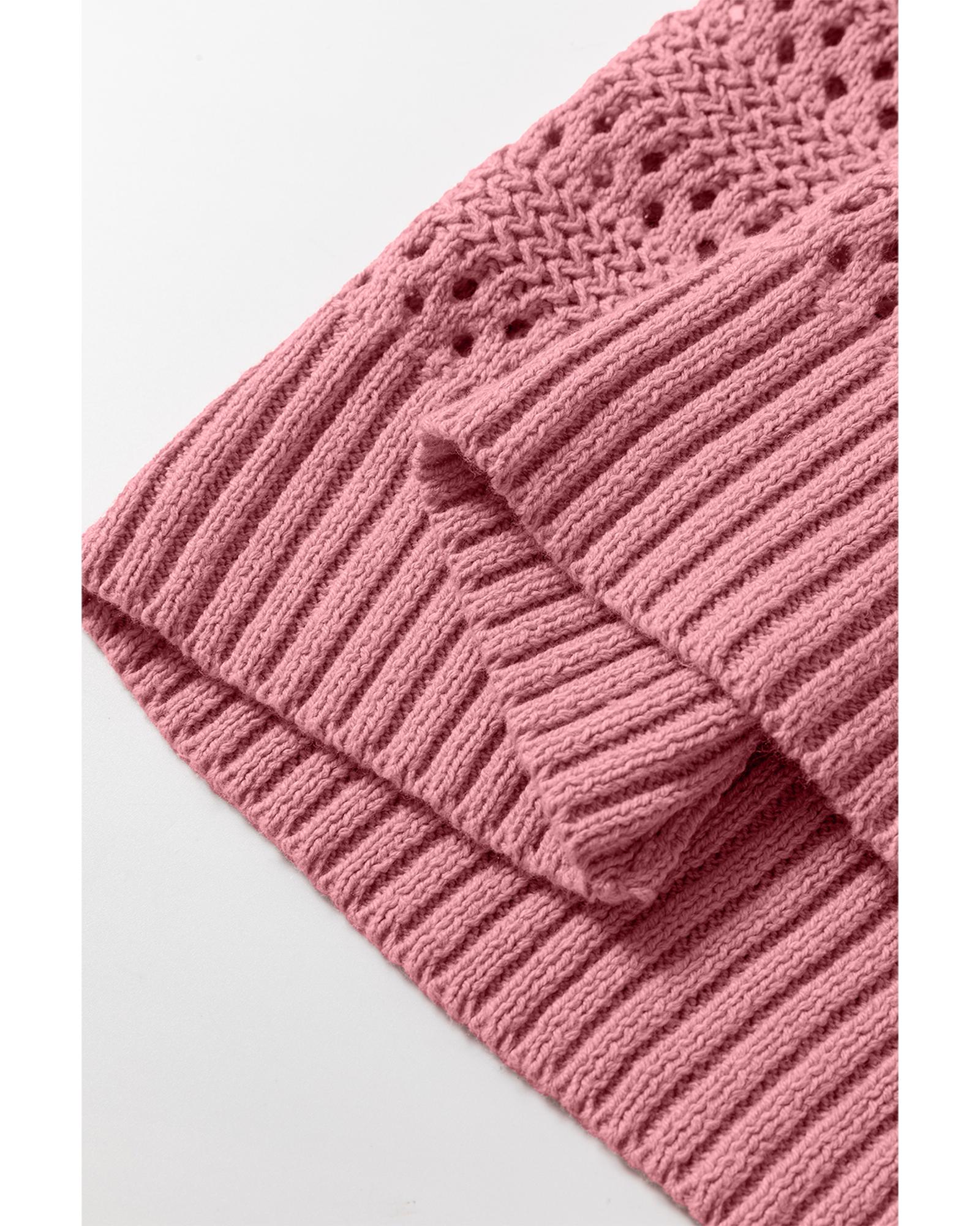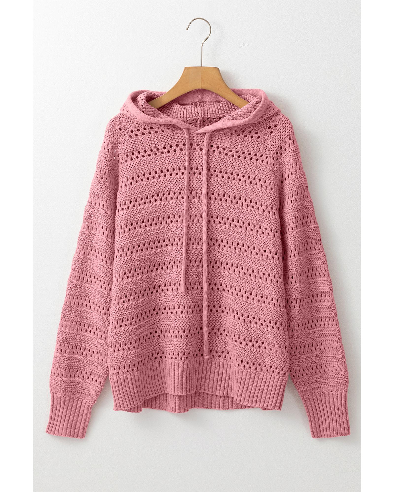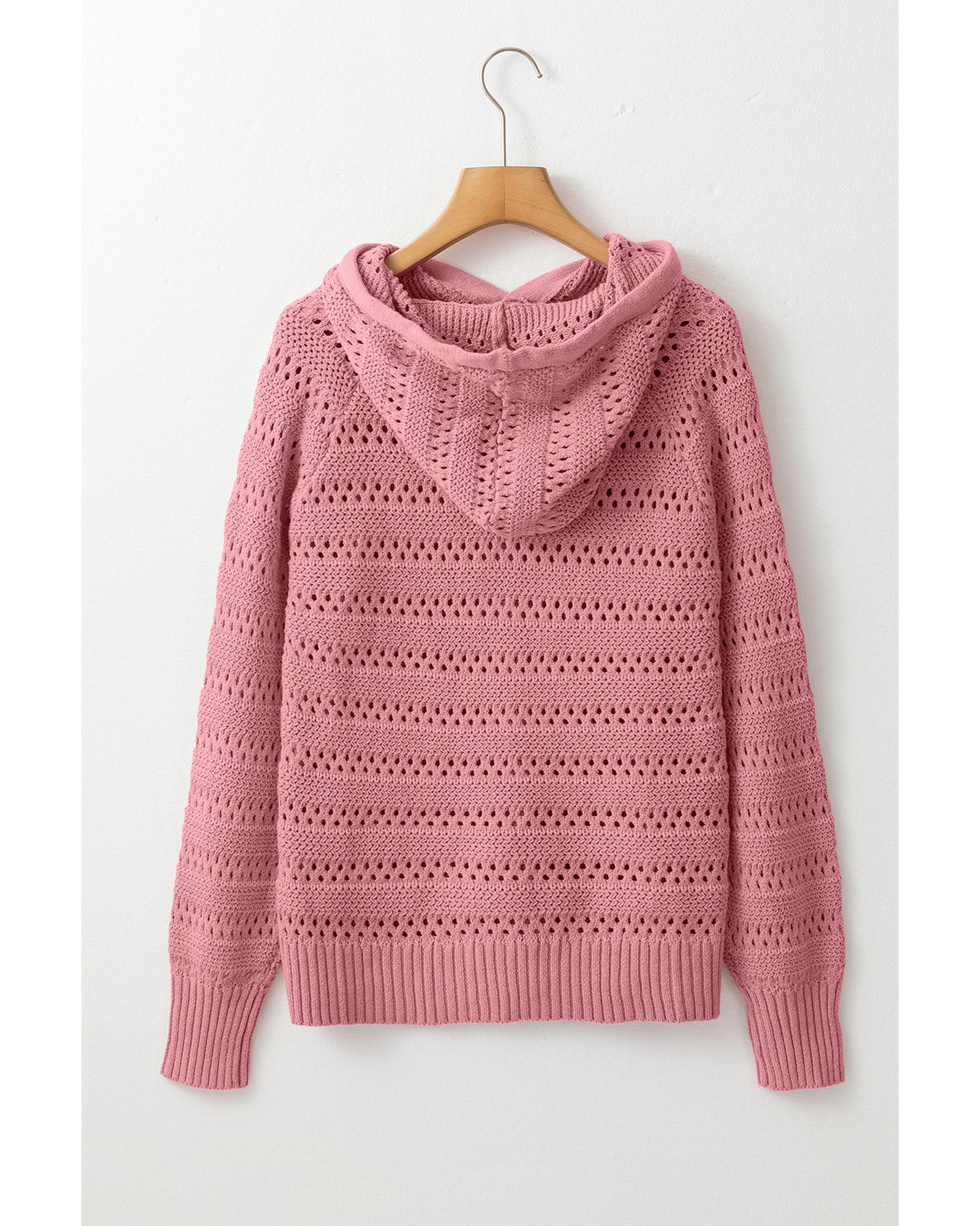 Peach Blossom Pointelle Knit Raglan Sleeve Hooded Sweater – XL