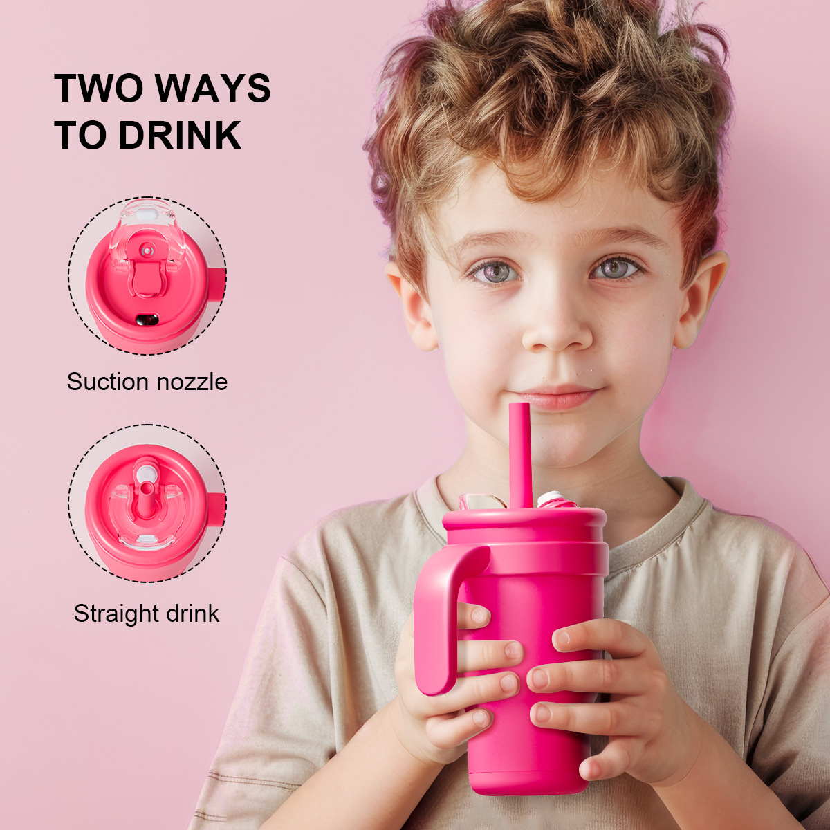 • Material: Stainless steel (body), food-grade plastic (lid, handle, straw)