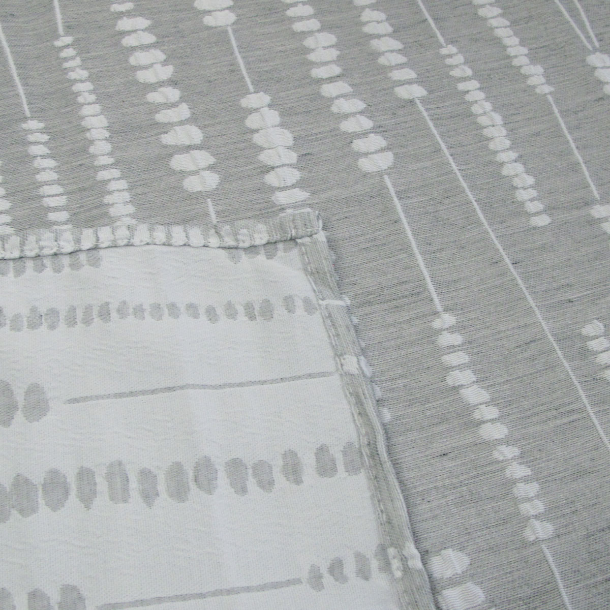The tablecloth features a sophisticated jacquard design made from high-quality polyester fabric. Its elegant grey pattern in white and grey tones enhances the dining setting, making it suitable for both casual family meals and formal gatherings. Available in multiple sizes, it provides a refined drape over various table dimensions to suit different occasions.