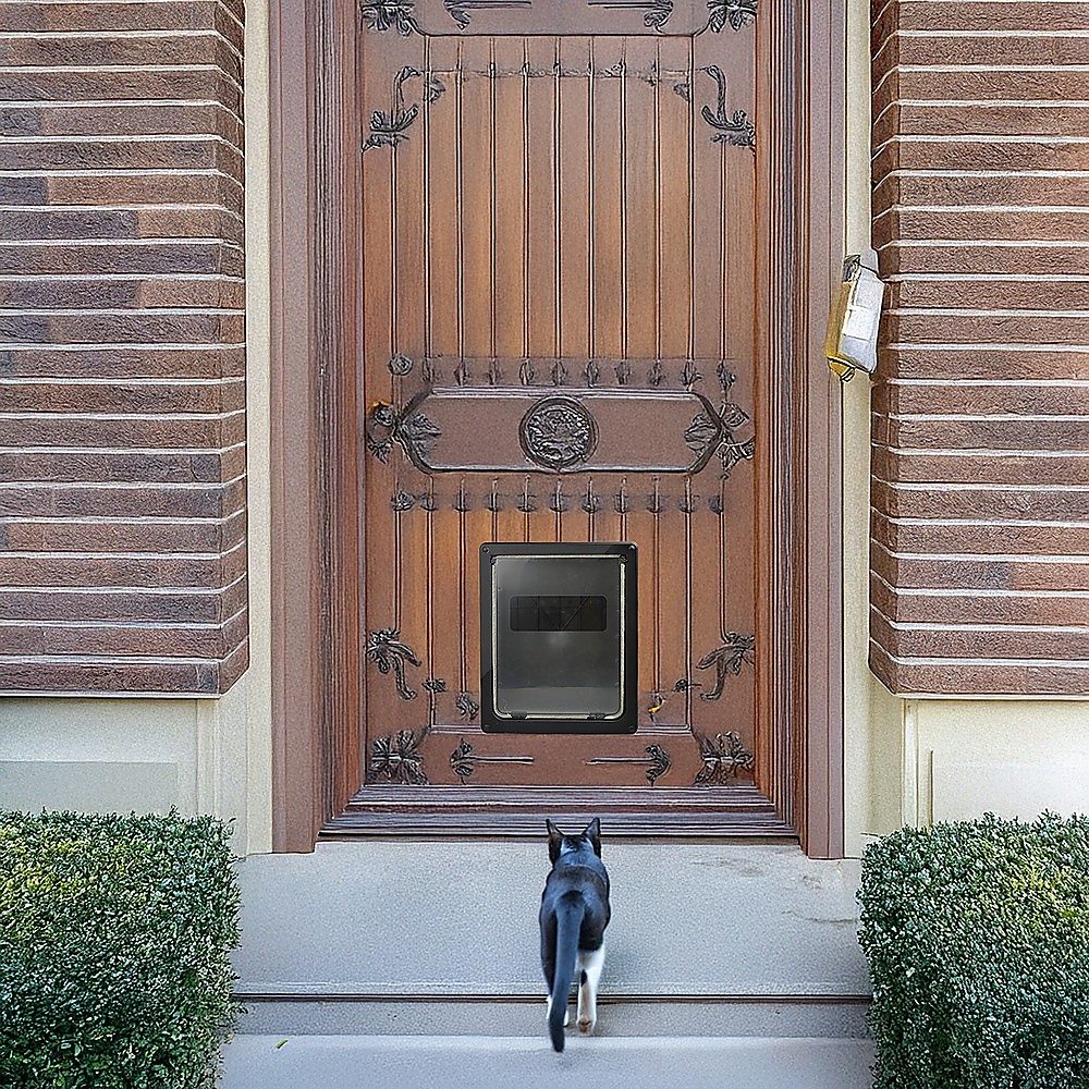 This pet door provides a secure and convenient way for pets to move freely between indoors and outdoors. It features a lockable design to ensure safety and control, while the two-way opening allows pets to pass through easily. The door is suitable for various types of doors and walls, offering versatility in installation.