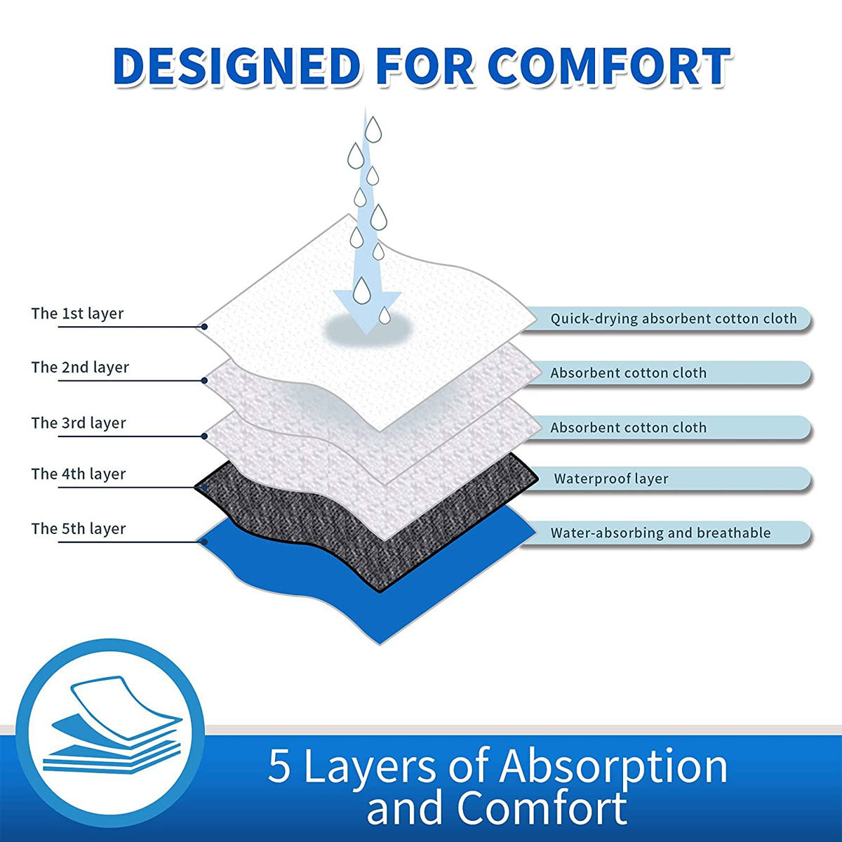 Material: Outer layer made of cotton blend, with a multilayer absorbent core