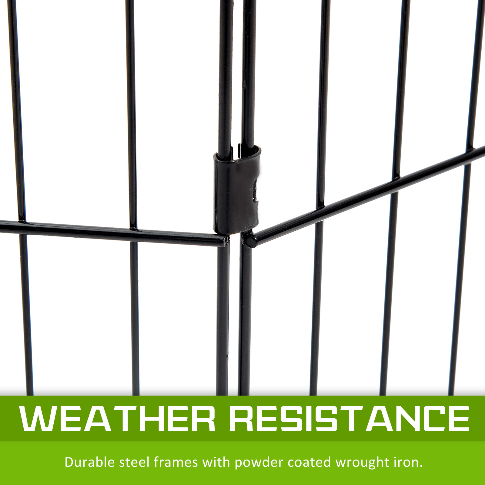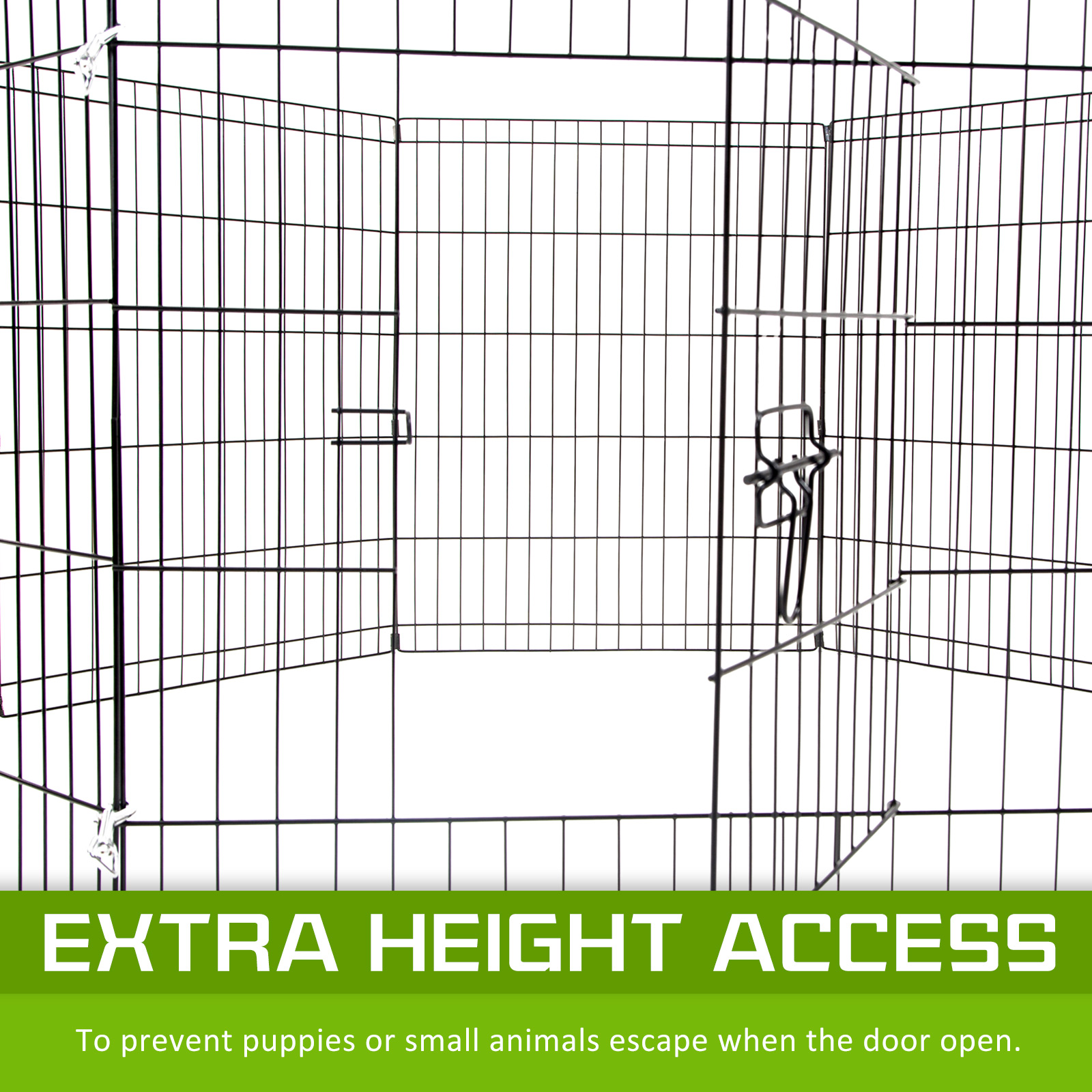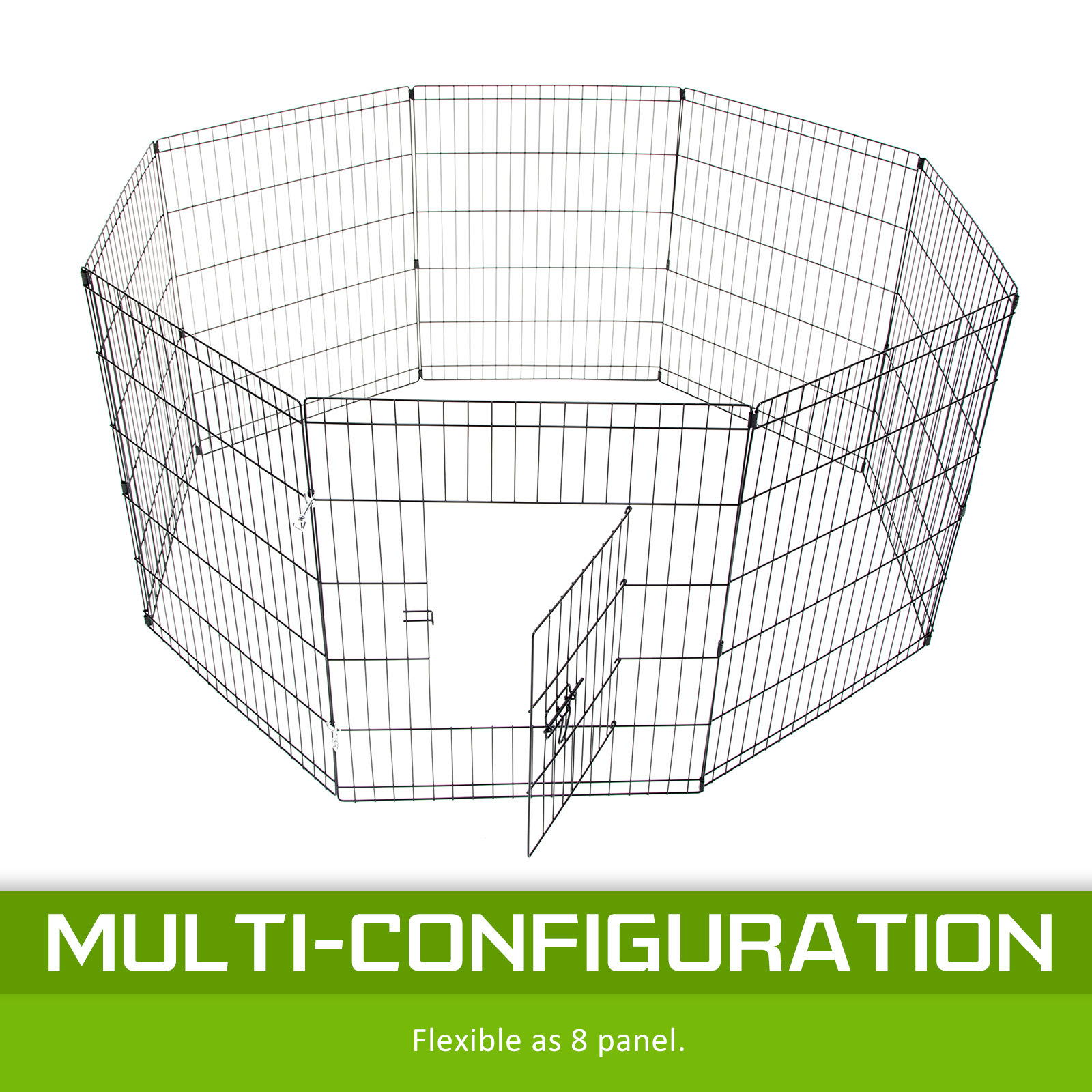 This foldable pet playpen provides a versatile and secure space for small pets such as puppies, kittens, guinea pigs, and rabbits. Its 8-panel design allows for multiple configurations, making it suitable for both indoor and outdoor use. Constructed with durable steel frames and a weather-resistant finish, it ensures long-lasting protection. The playpen features a secure access door with bolt latches and rounded edges for pet safety. It is easy to set up and fold down without tools, making transportation and storage convenient.