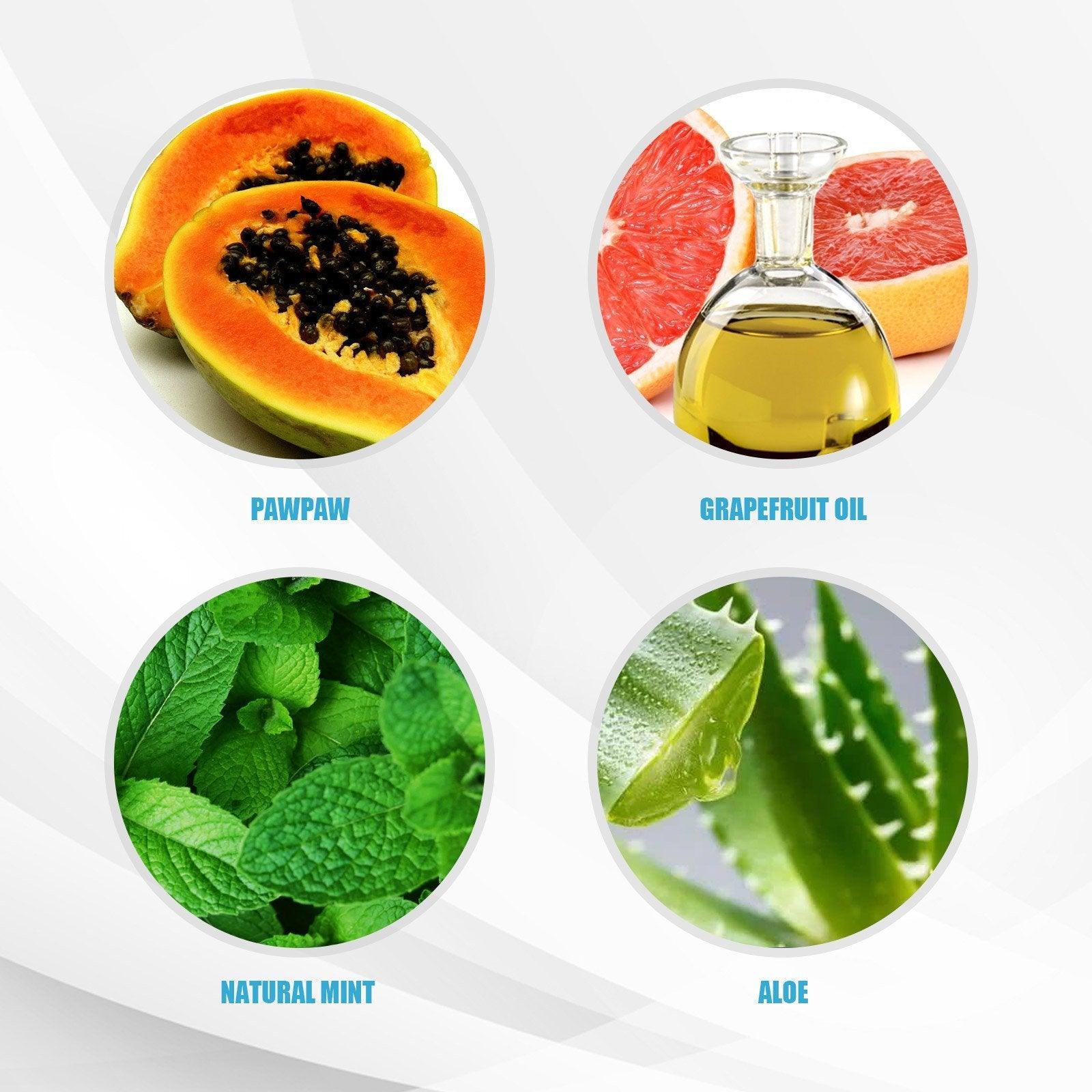• Ingredients: Natural Mint, Grapefruit Oil, Aloe, Pawpaw Extract