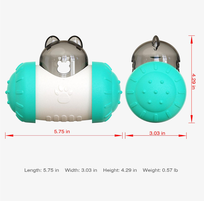 This interactive treat dispenser ball is designed to keep pets entertained and engaged. Suitable for both dogs and cats, it features a weighted base that allows it to stay upright and encourages pets to nudge and roll it to dispense treats. Made from durable materials, it provides mental stimulation and physical activity for your pets during playtime.