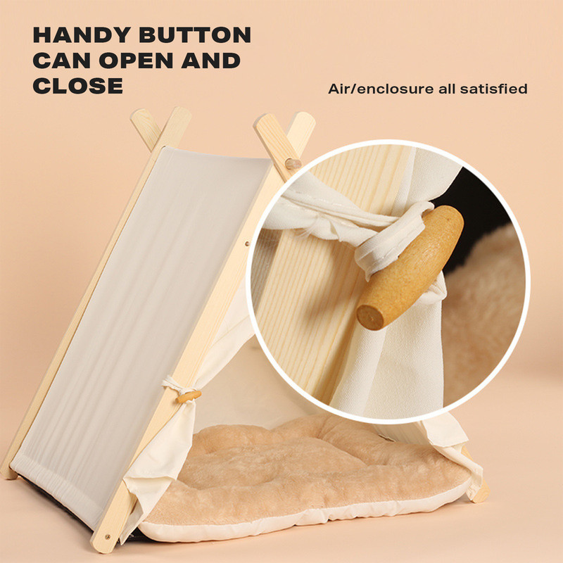 This pet teepee provides a cozy and private space for your pets, offering comfort and entertainment. Made from breathable and durable fabric, it is easy to disassemble and machine washable, ensuring convenience and longevity. Suitable for indoor and outdoor use, it can be placed in various locations such as living rooms, balconies, or gardens. The tent features a removable cushion that can also serve as a soft pet bed, providing a comfortable resting spot for your furry friends.