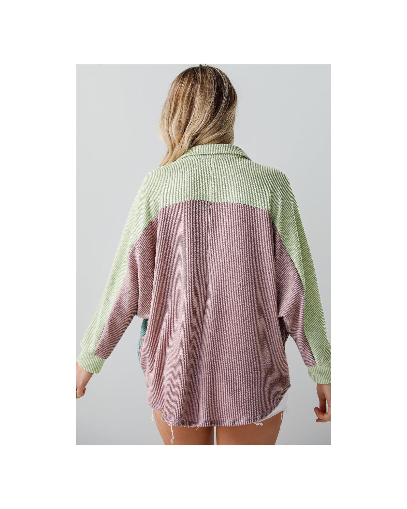 Phalaenopsis Color Block Corded Buttoned Oversized Shacket – XL