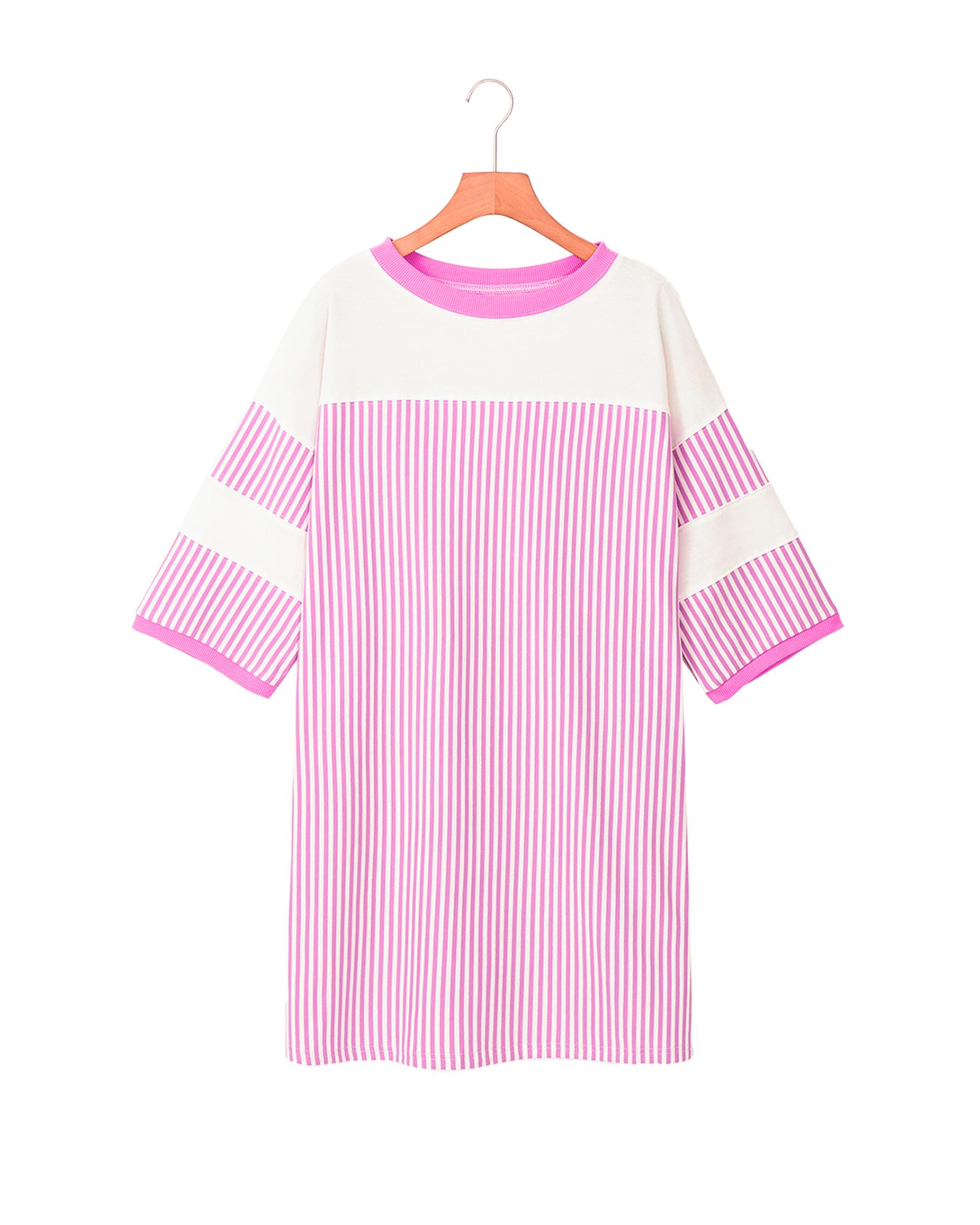 Phalaenopsis Striped Patchwork Three Quarters Sleeve Loose Mini Dress – M