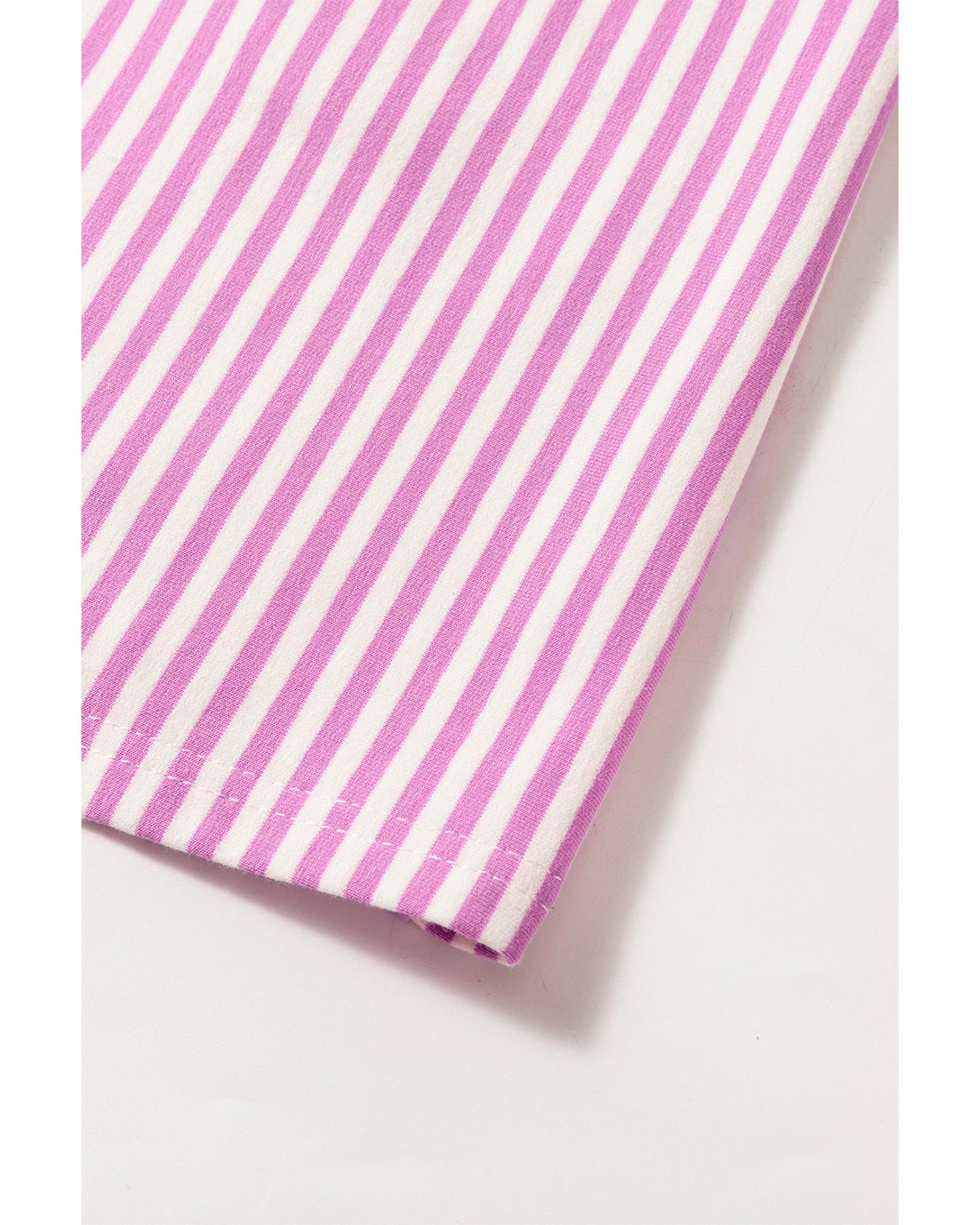 This mini dress features a trendy and flattering design with a striped patchwork pattern, suitable for various body types. It offers a comfortable fit with a classic crew neck and shirt-style design, making it ideal for transitional seasons.