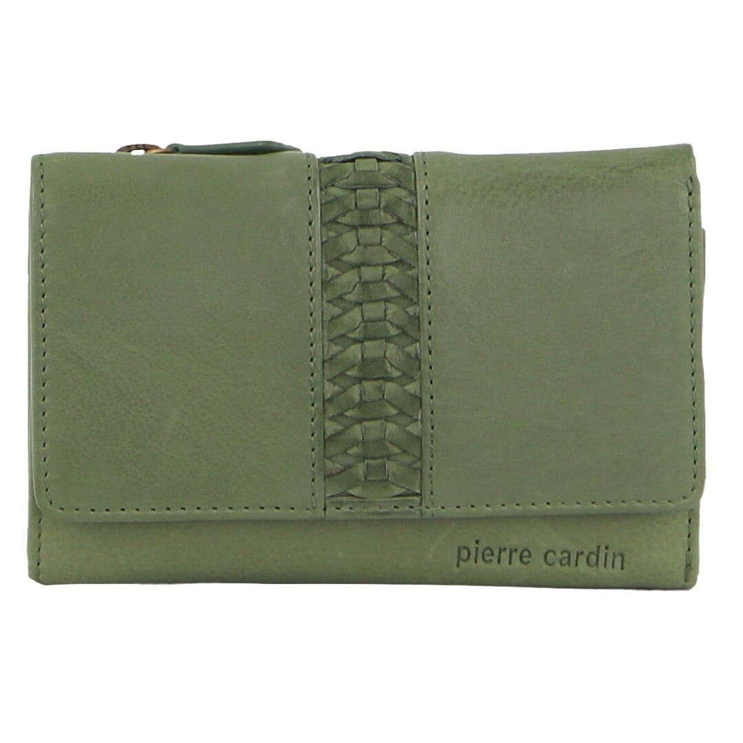 Pierre Cardin Leather Ladies Woven Design Tri-fold Wallet in Leaf Green