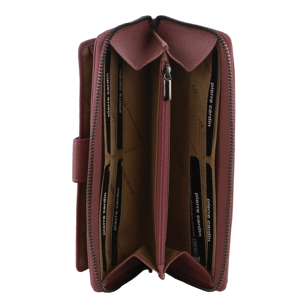 Pierre Cardin Womens Leather Zip Around Wallet RFID Blocking w/ Wristlet in Rose