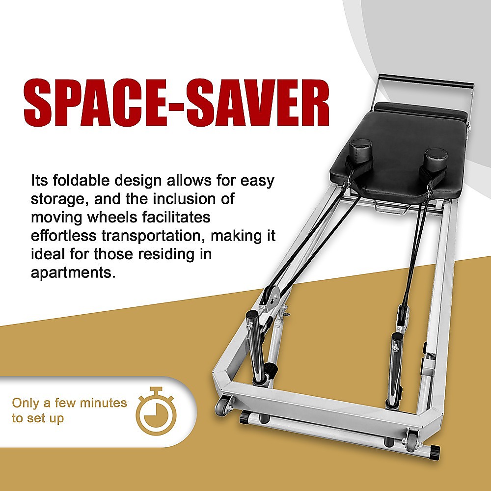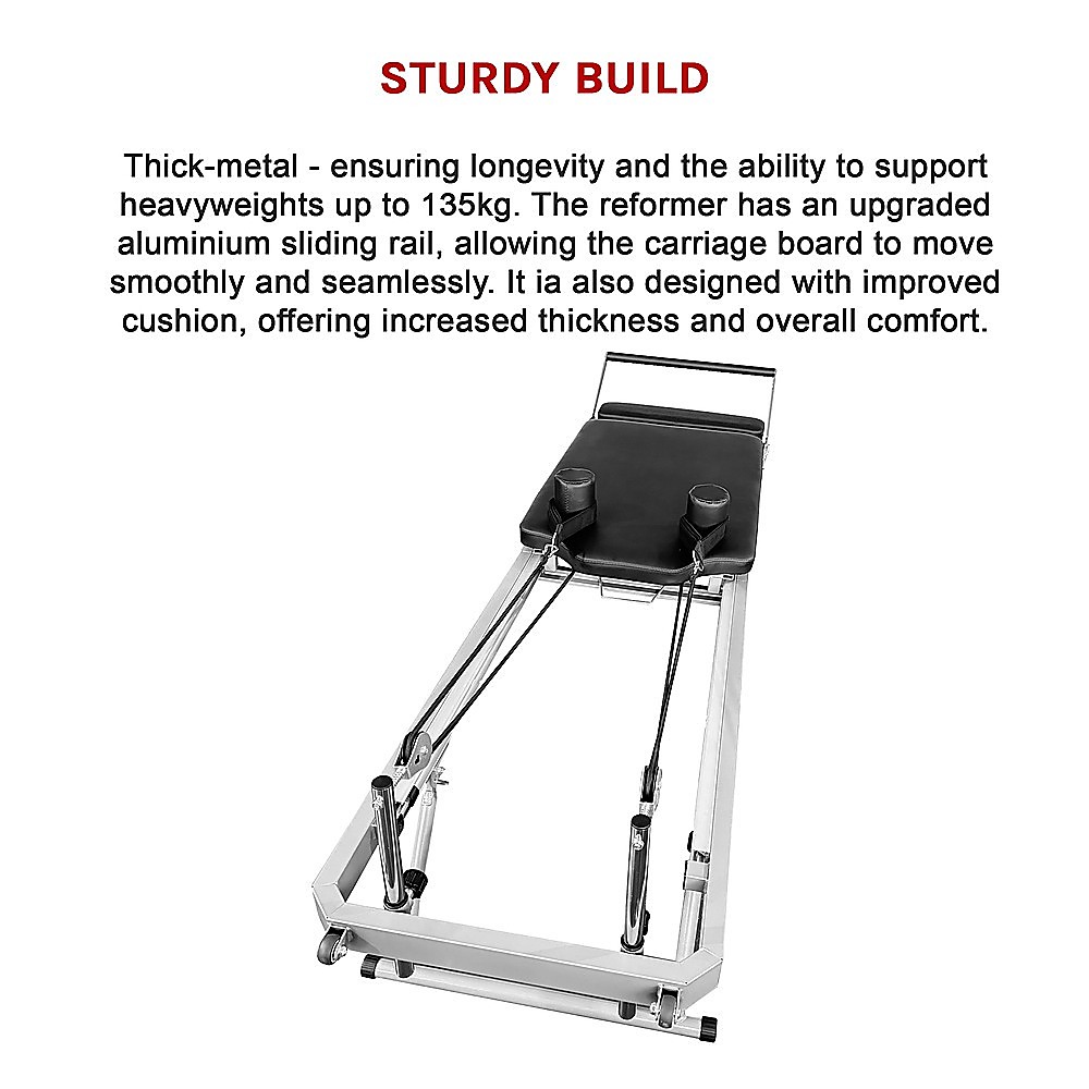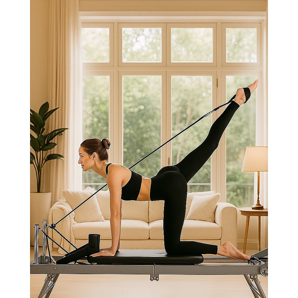 This foldable Pilates Reformer Machine is designed to enhance your home workout experience by providing smooth performance and a space-saving design. Its sturdy construction and sleek frame make it suitable for a variety of exercises, helping you achieve studio-quality results at home with convenience and stability.