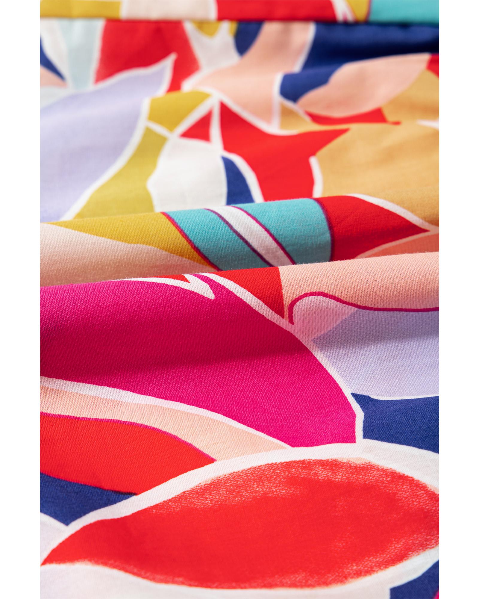 This pink abstract printed mini dress features a trendy fitted design with a playful and stylish appearance. It is crafted with ruffled flutter sleeves and tiered layers that create a dynamic silhouette, making it perfect for casual outings or special occasions.