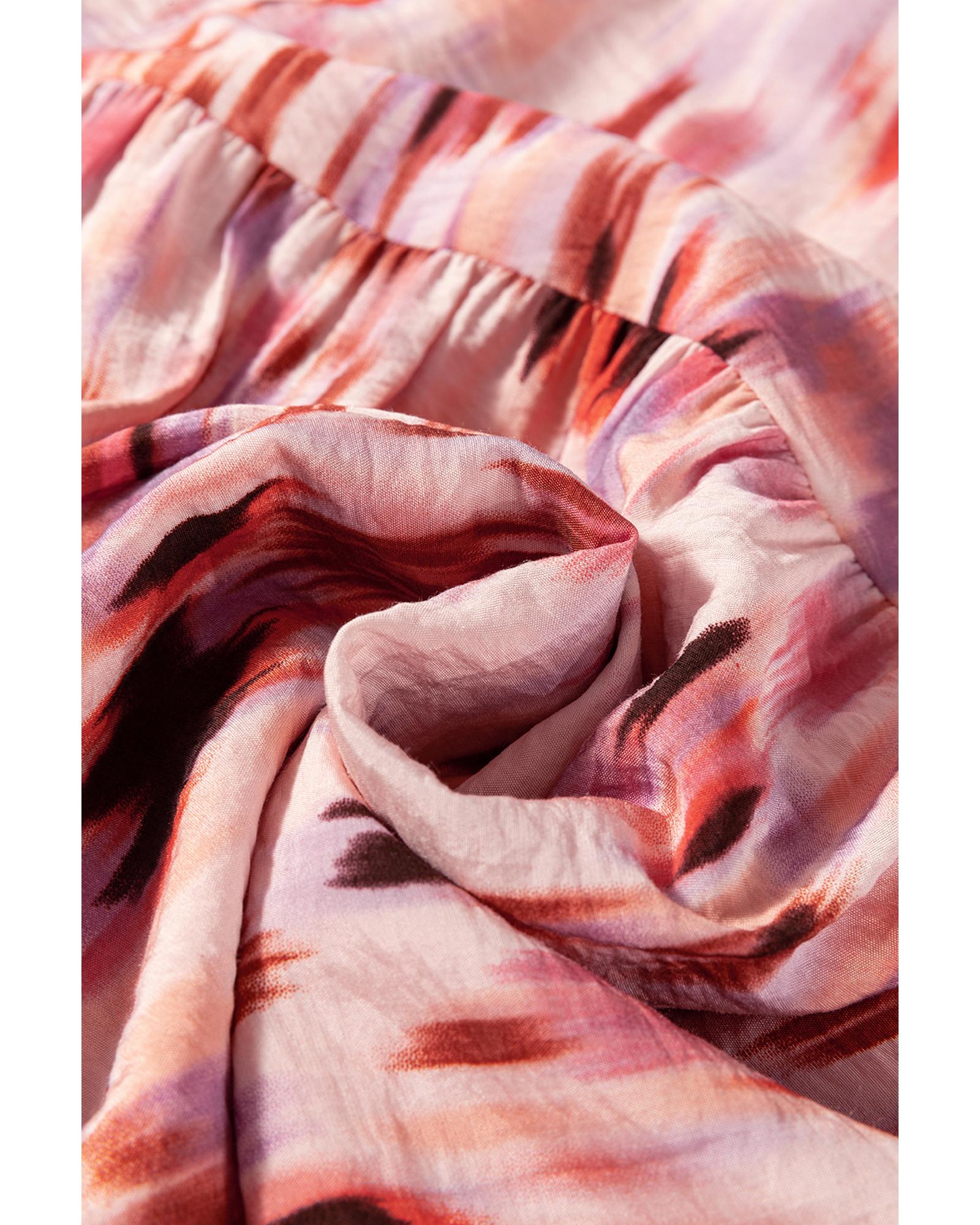 Pink Abstract Watercolor Tie Dye Tiered Maxi Skirt – L