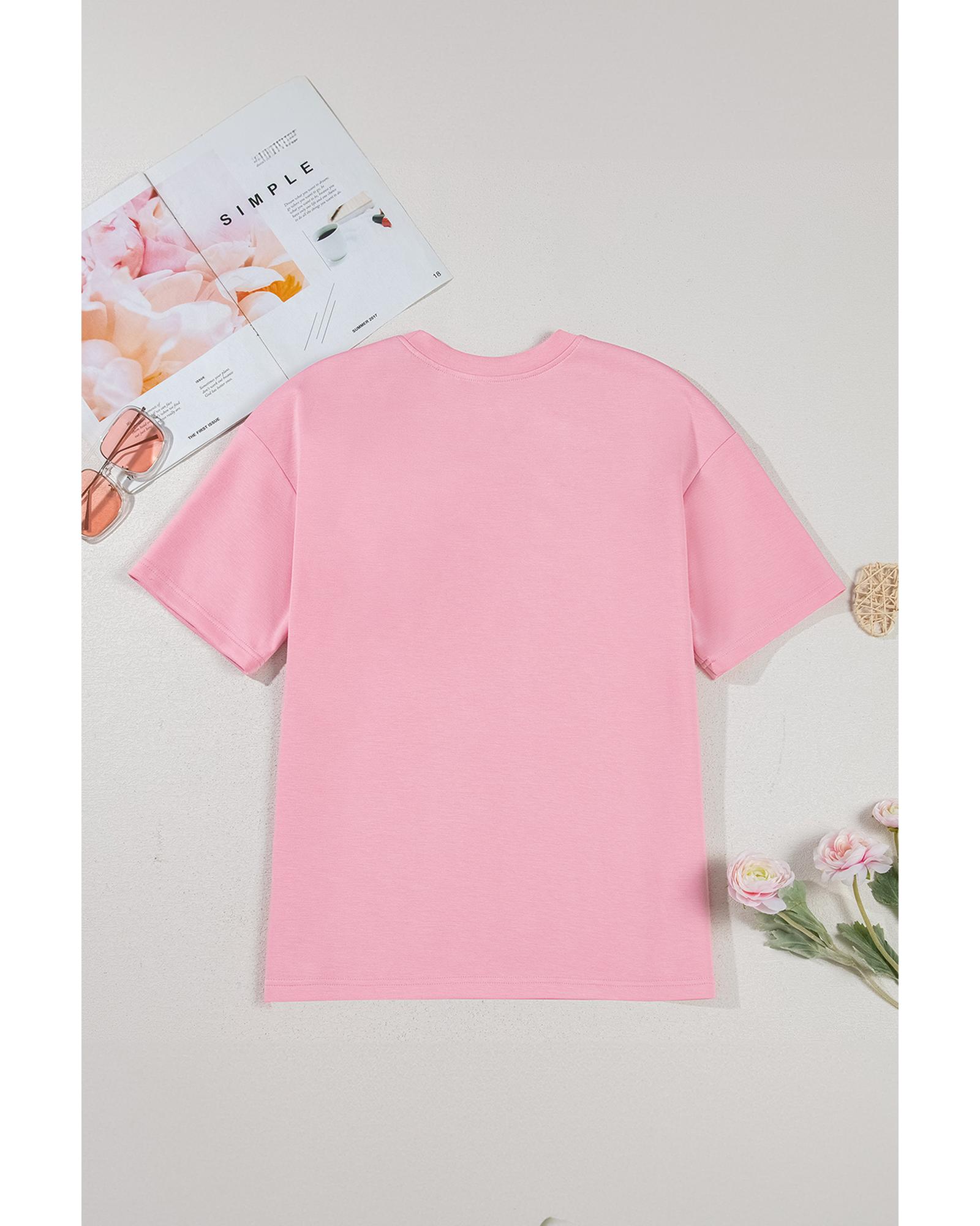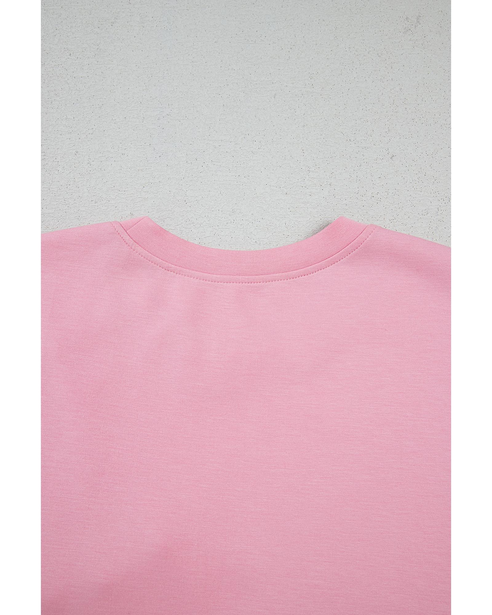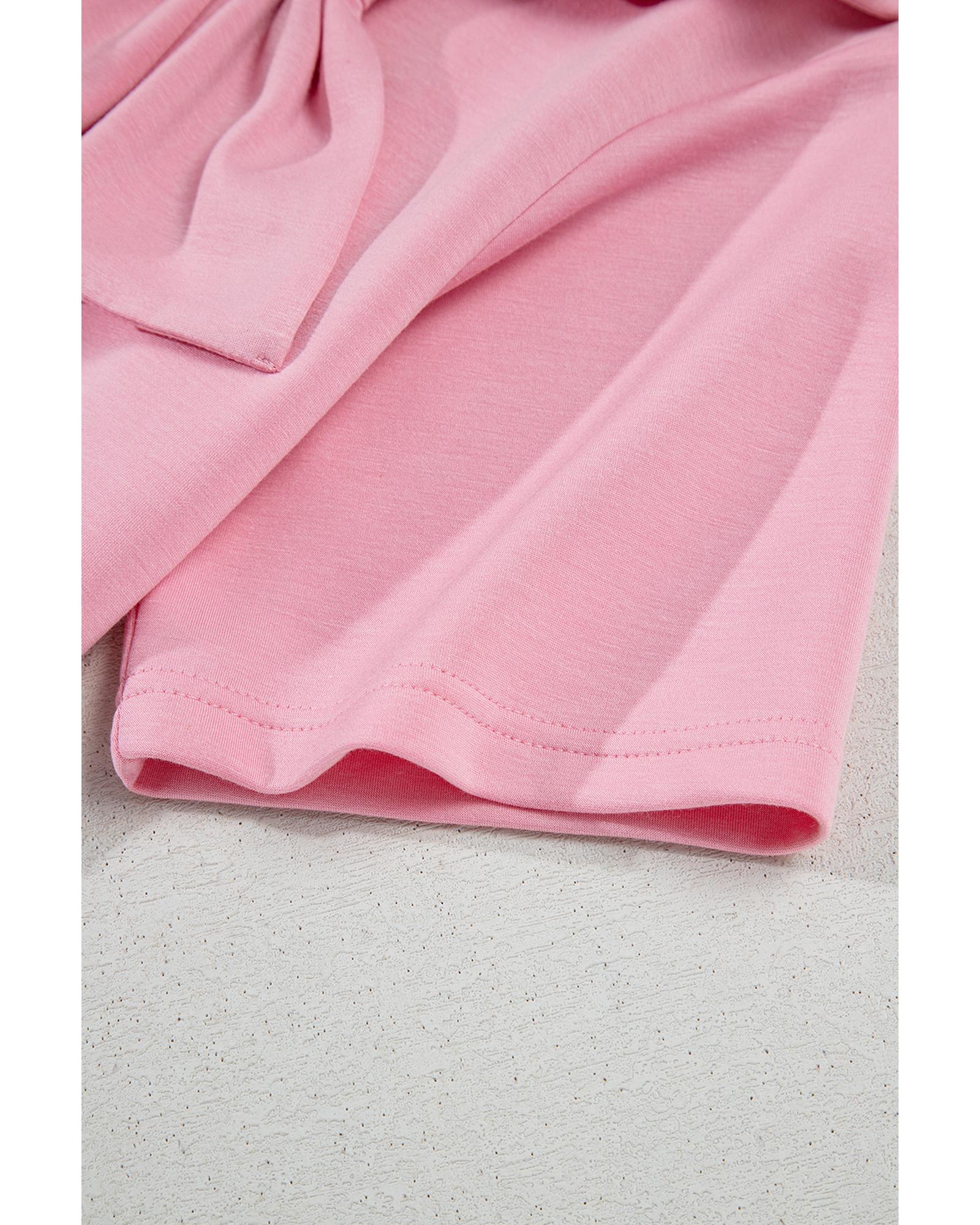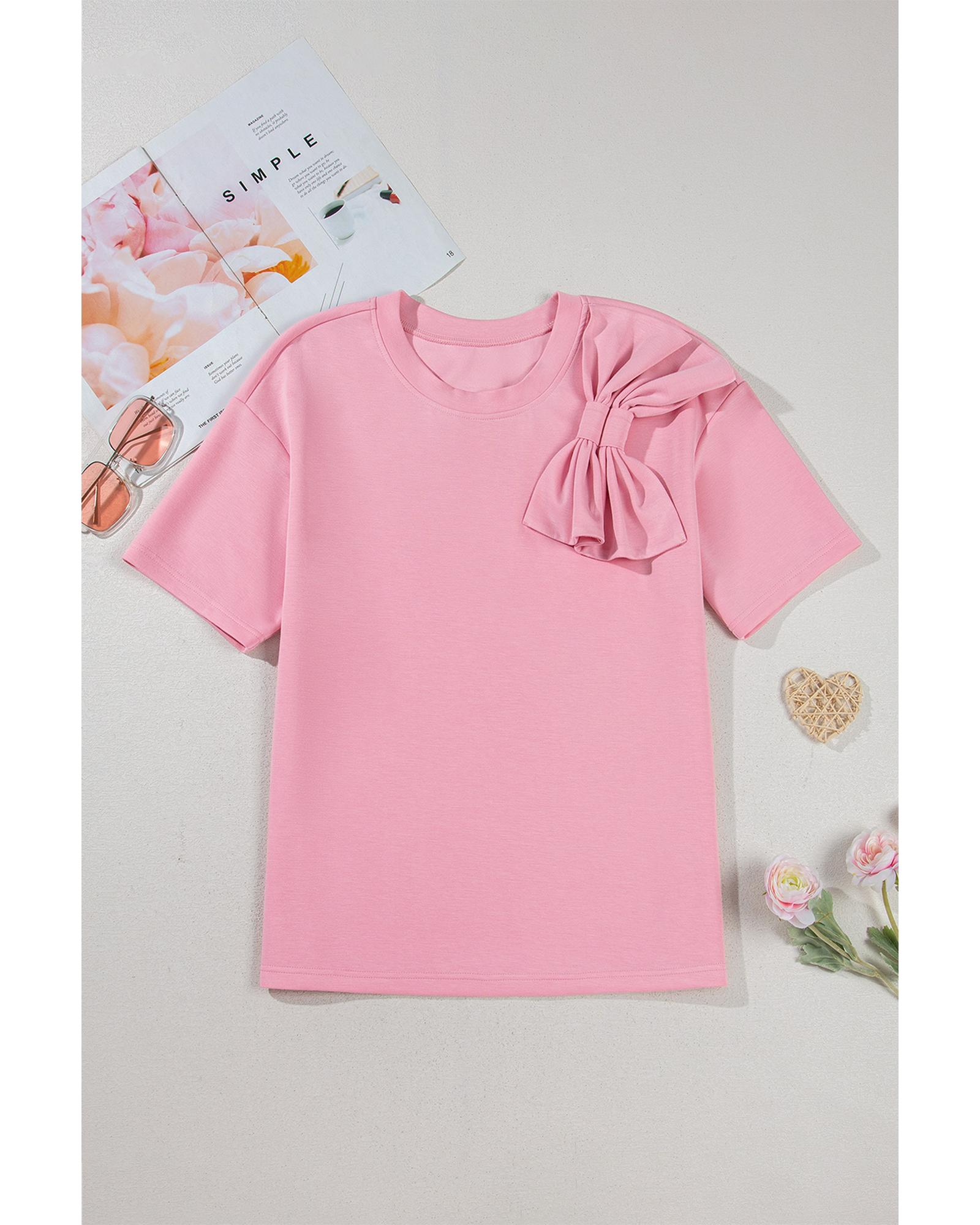 This T-shirt features a charming pink bow applique design and half sleeves, making it a versatile choice for various occasions. Its stylish appearance allows for easy pairing with jeans, skirts, or shorts, suitable for casual outings or more dressed-up events. The garment offers a comfortable fit with high elasticity, ensuring ease of movement and all-day comfort.