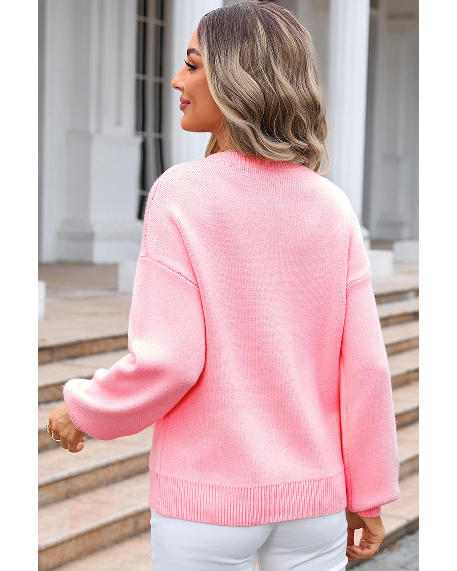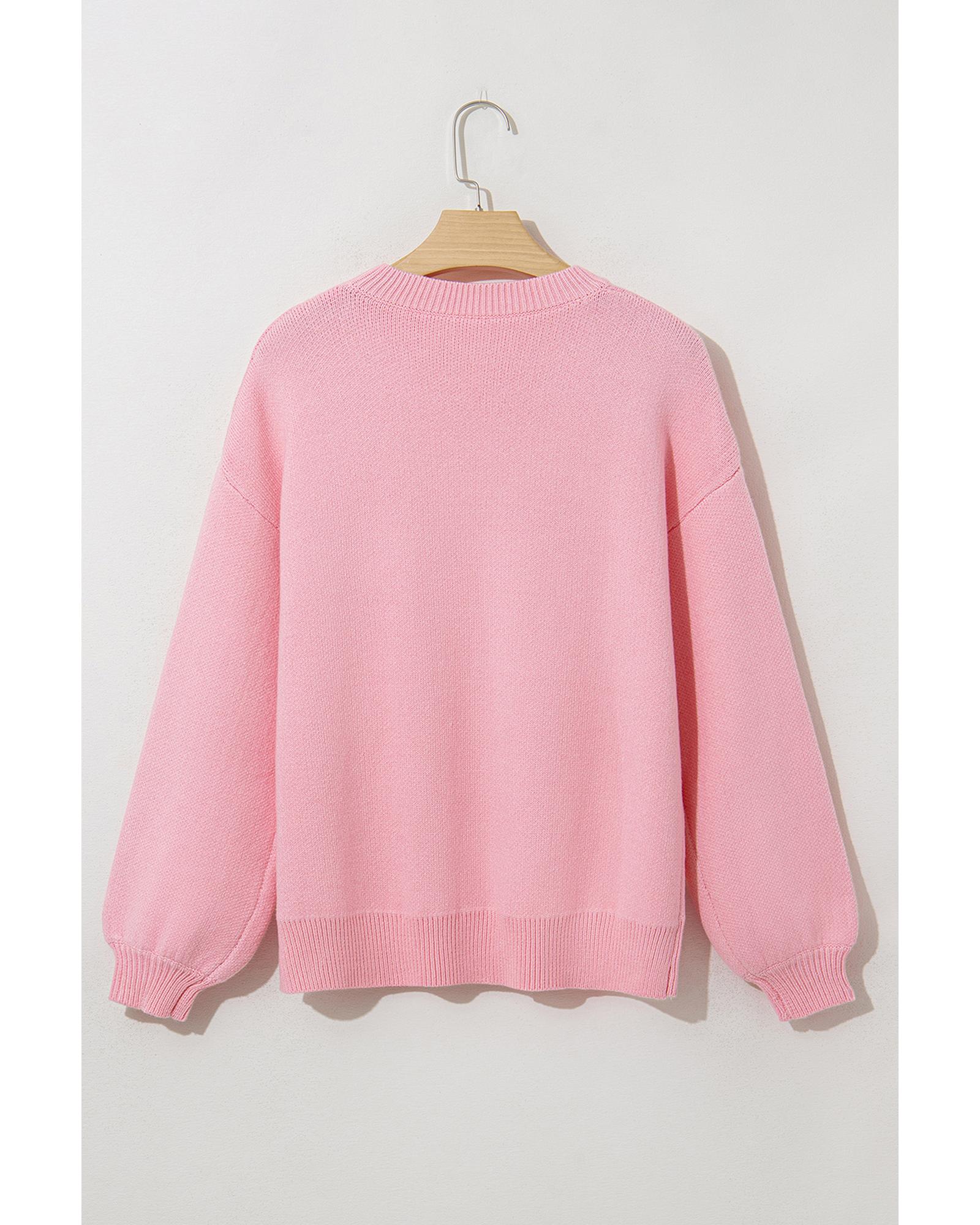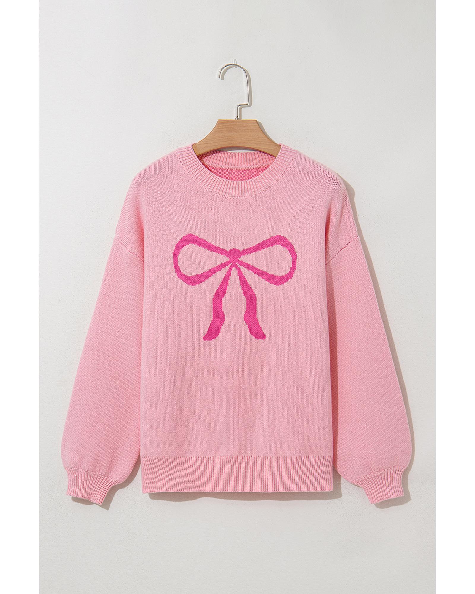 Pink Bow Graphic Drop Shoulder Round Neck Sweater – XL
