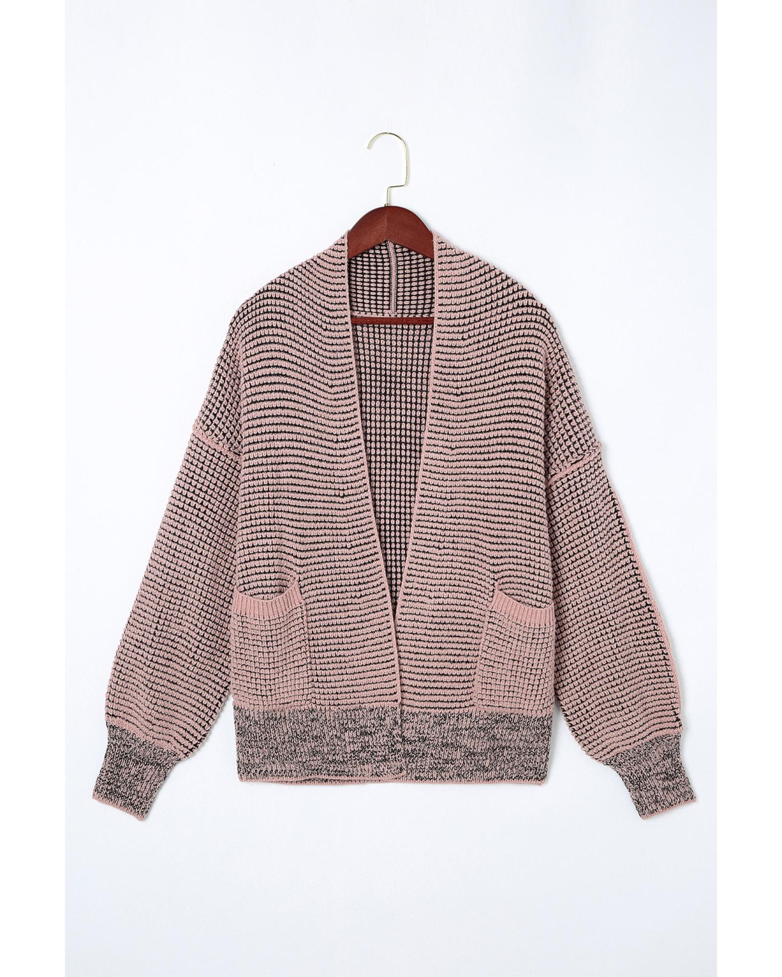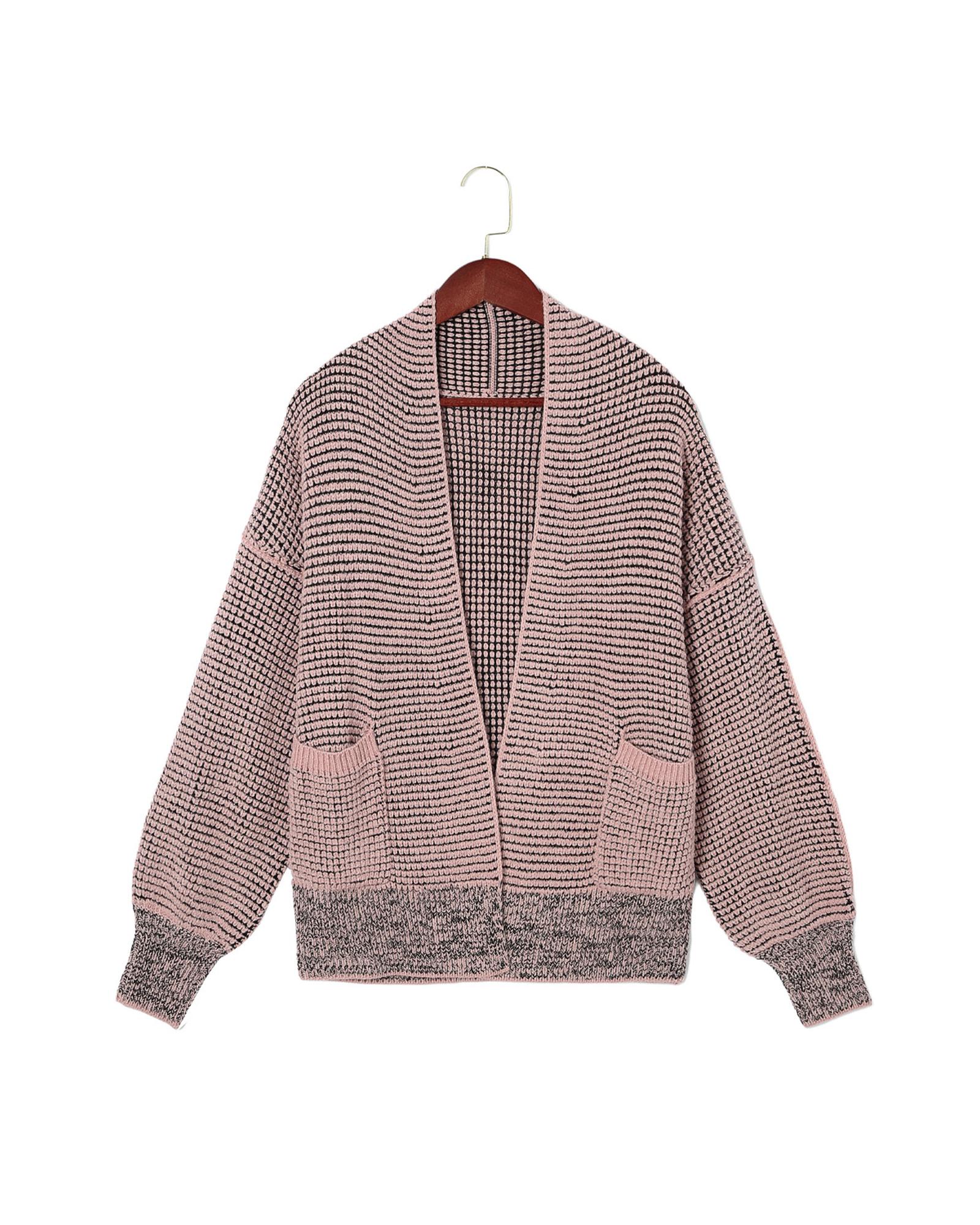 Pink Chunky Waffle Knit Oversized Collar Cardigan – M