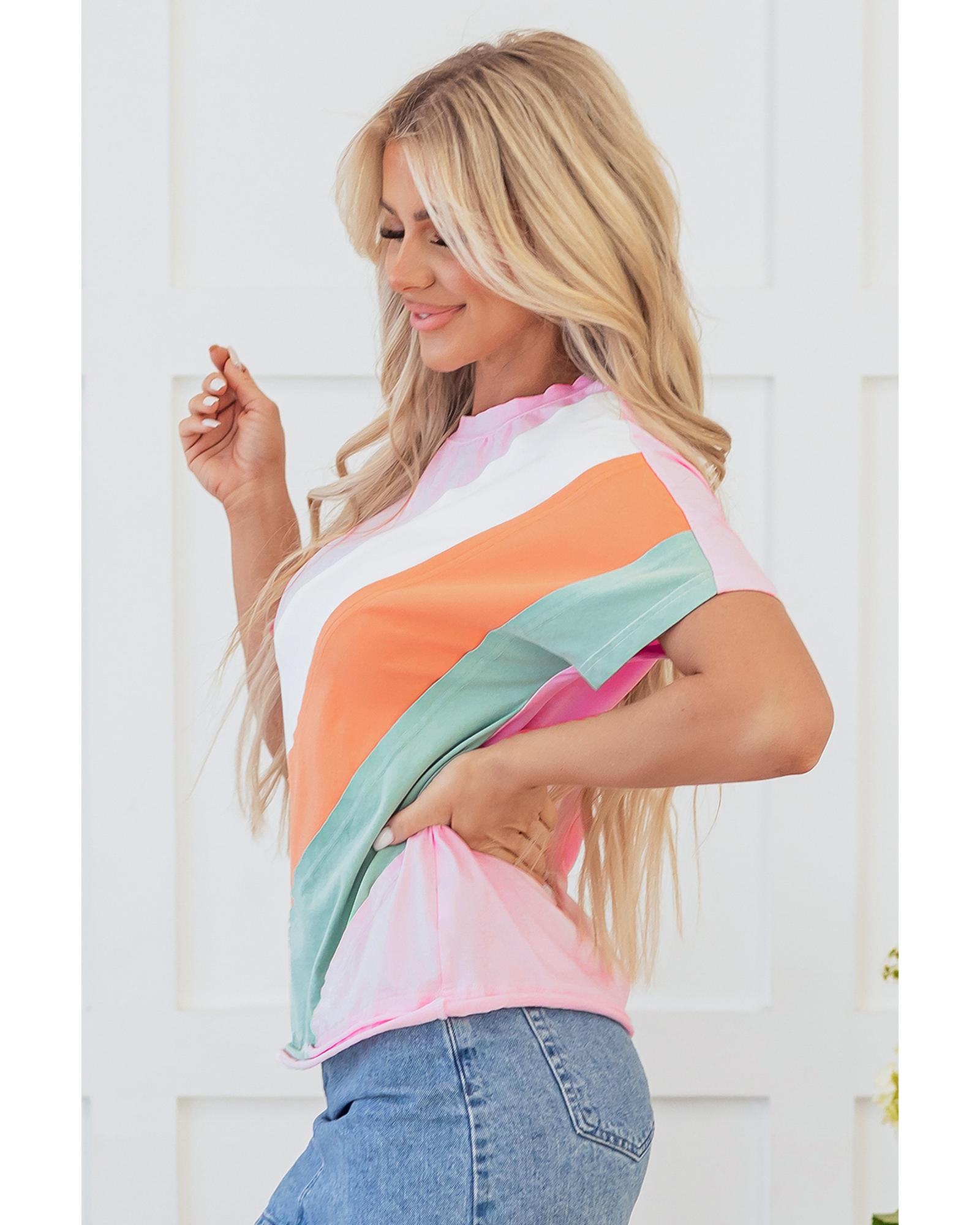 This Pink Color Block Patchwork Seamed Crewneck T Shirt offers a vibrant and playful design with contrasting color blocks and unique patchwork details. It features a classic crew neck and short sleeves, making it suitable for casual wear and everyday comfort.