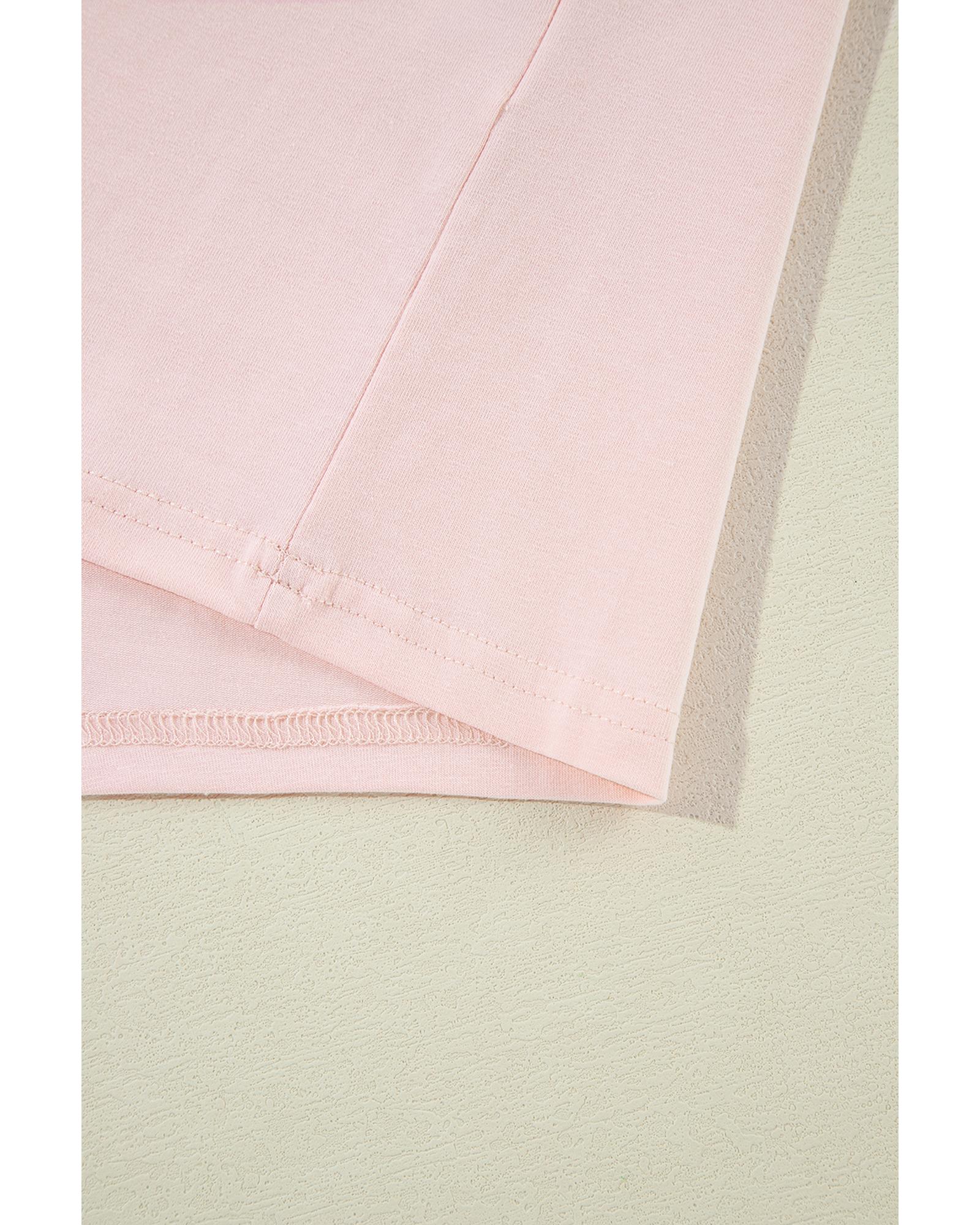 Pink Color Block Stitching Sleeve Round Neck Oversize Top – L