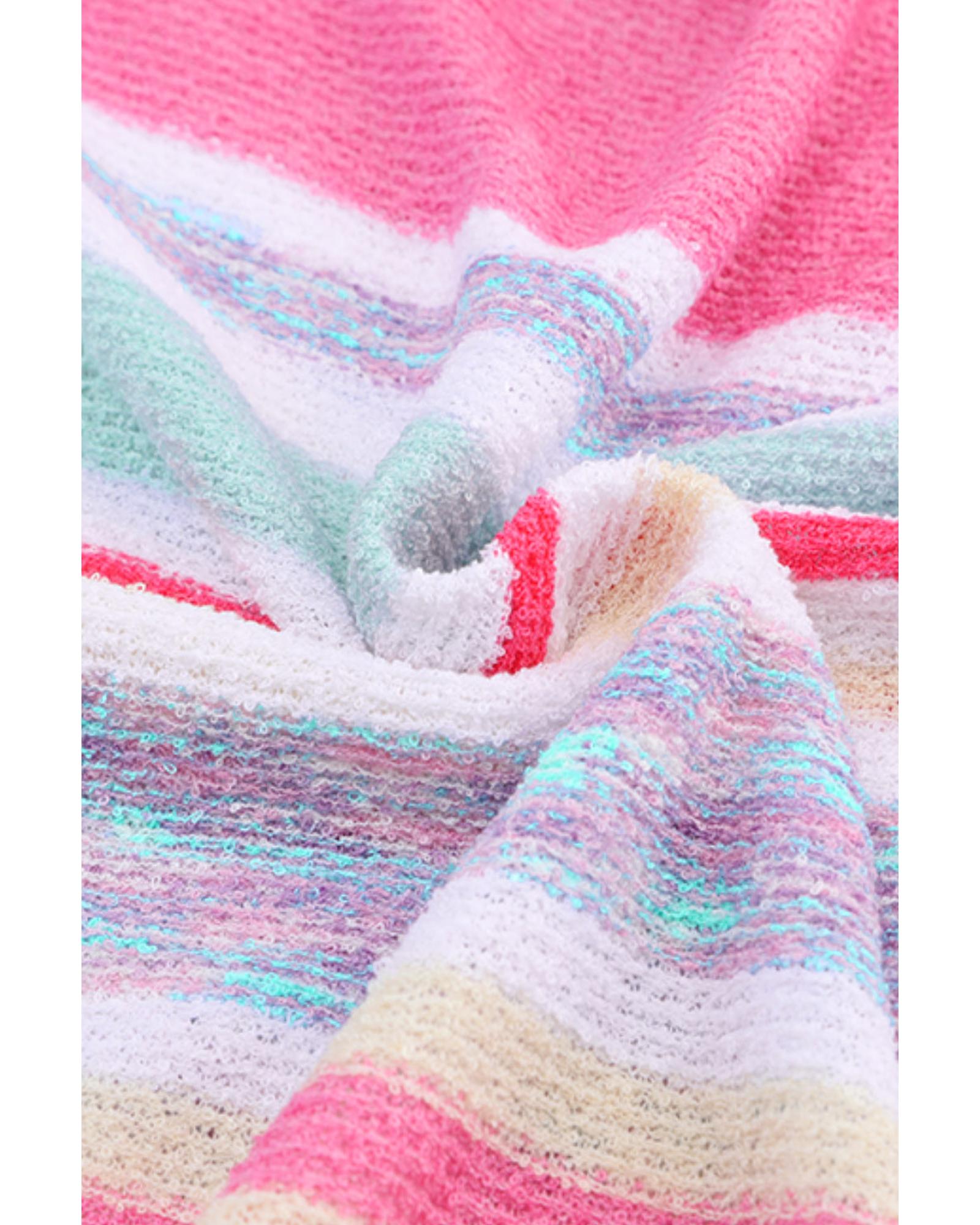 This pink color block striped knitted top features a trendy fitted design with a comfortable fit. It is suitable for casual wear and pairs well with pants, jeans, or shorts, making it a versatile addition to your wardrobe.