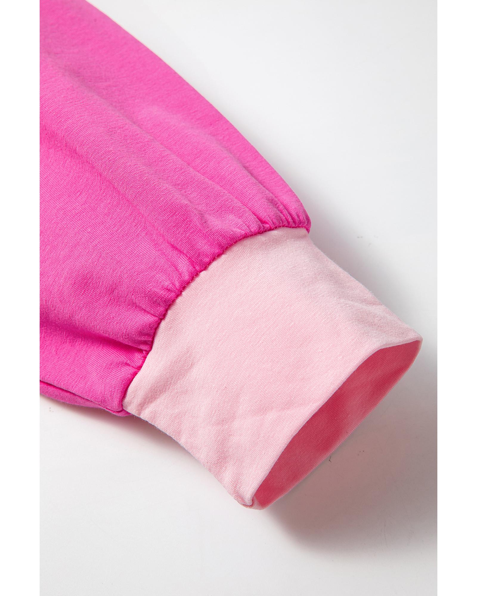 Pink Colorblock Patchwork Long Sleeve Plus Size Top – 2X