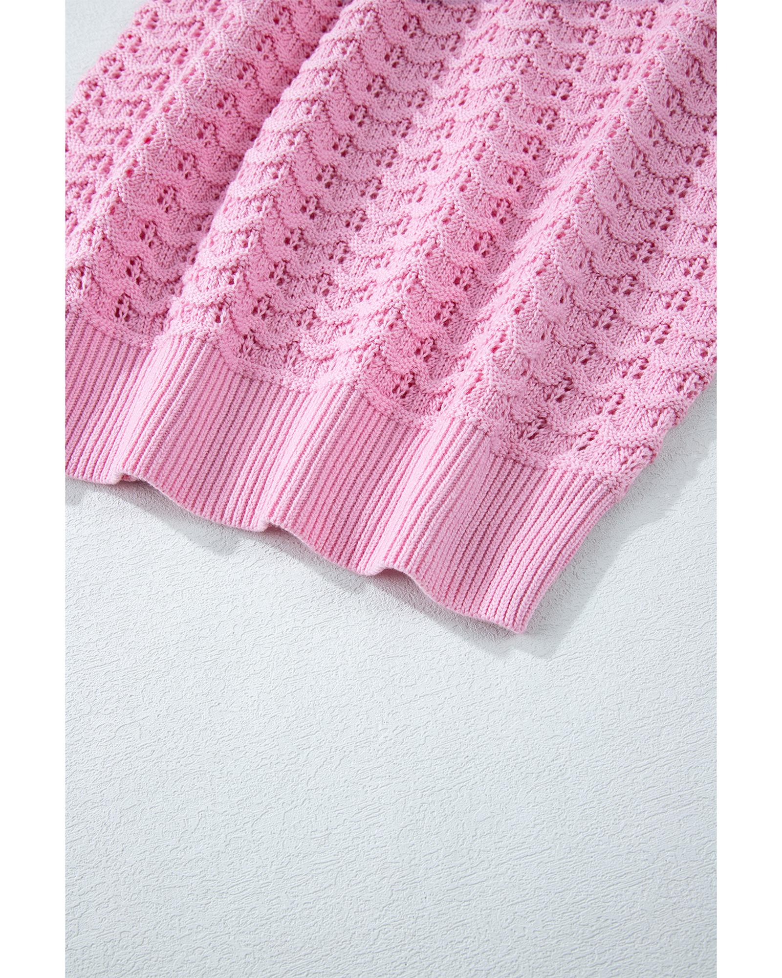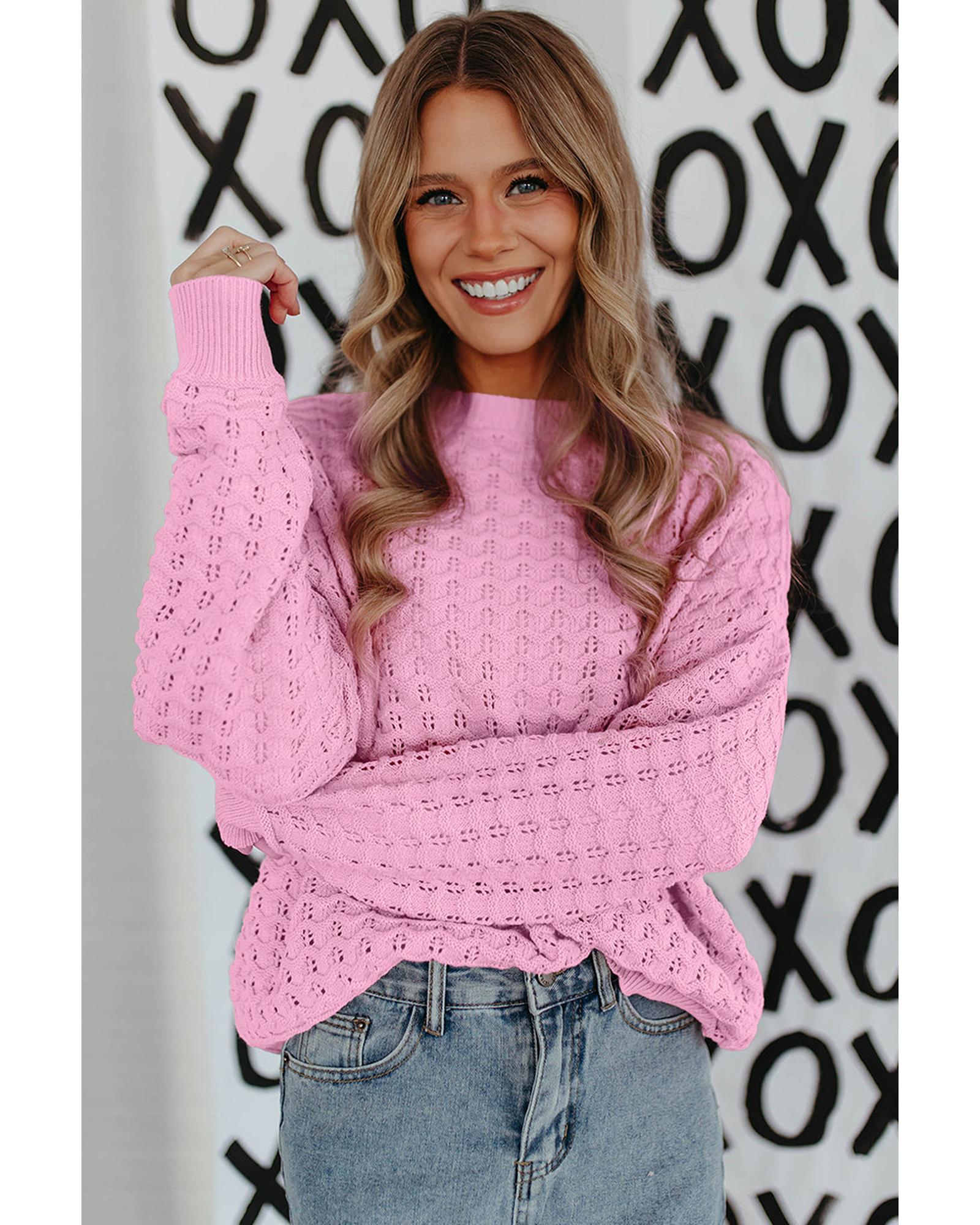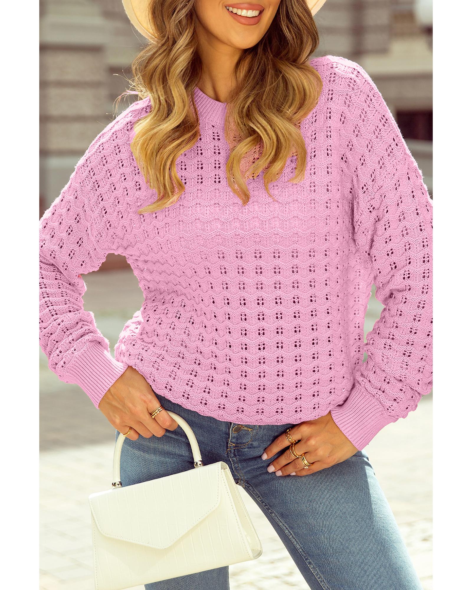 - 1 x Pink Crochet Knit Drop Shoulder Sweater