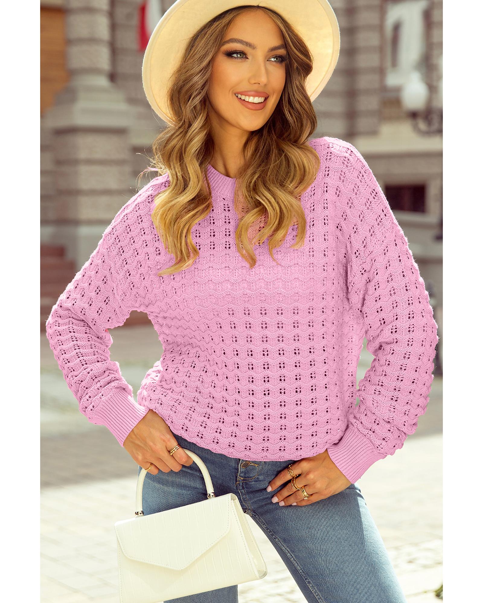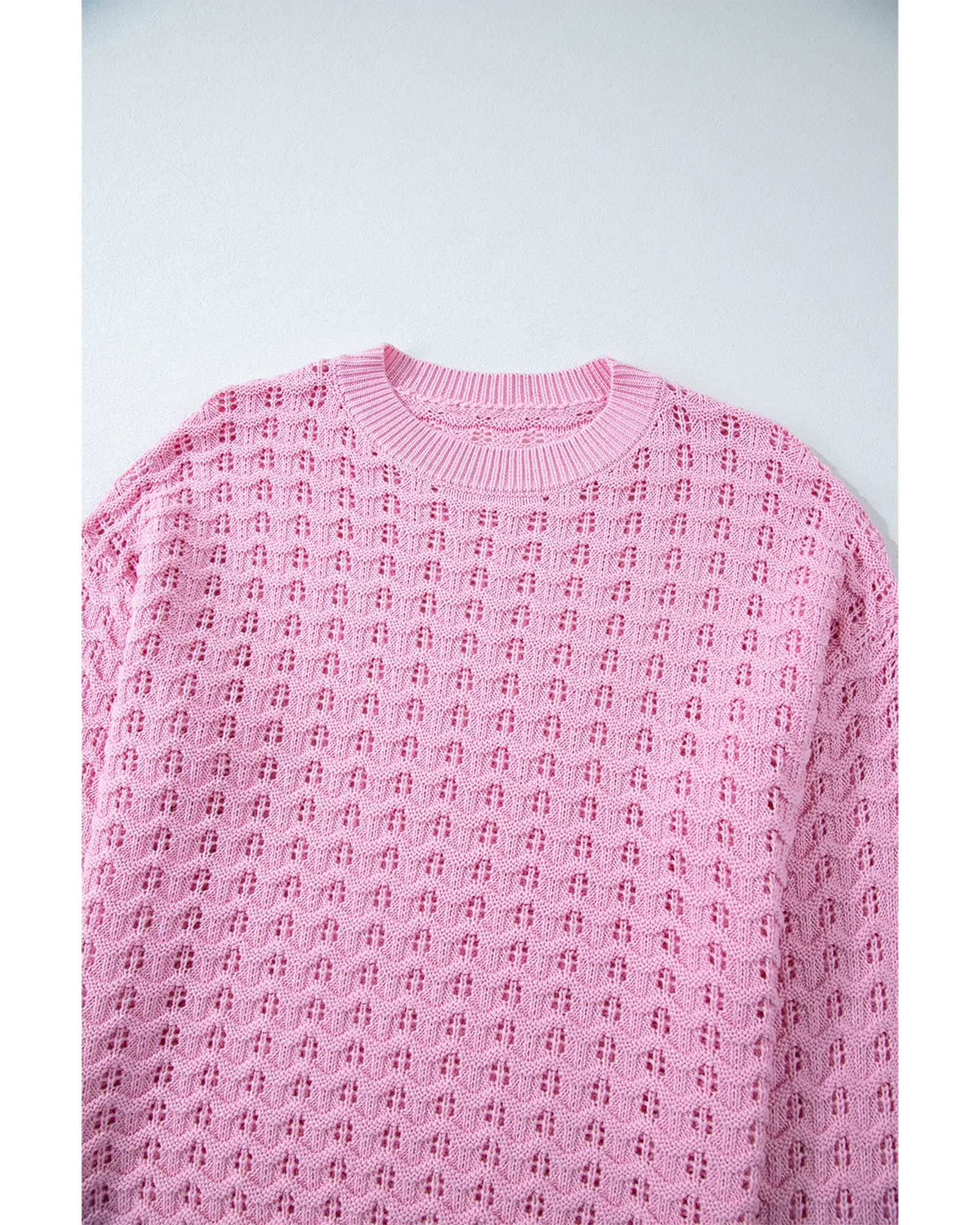 • 1 x Pink Crochet Knit Drop Shoulder Sweater