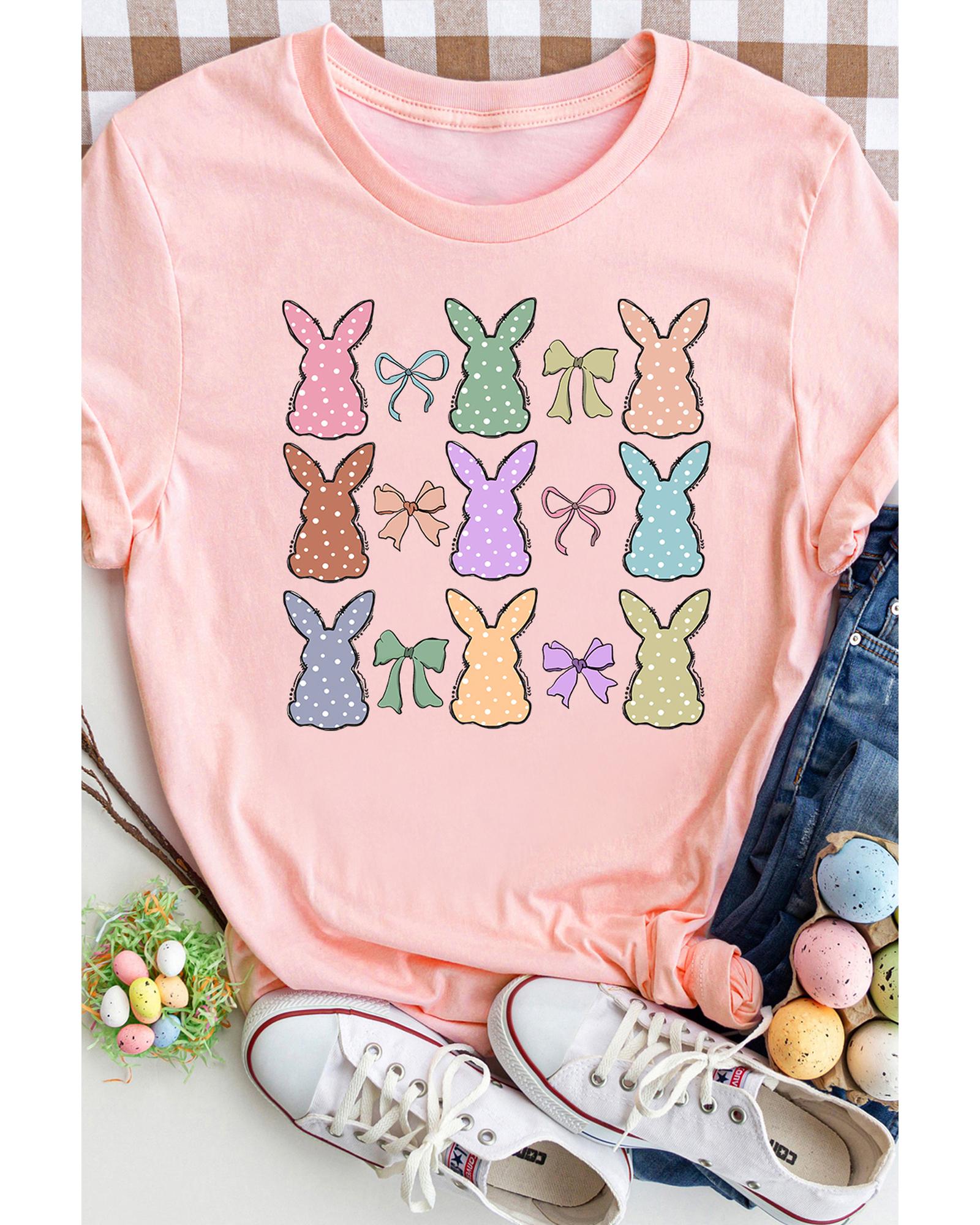 Pink Dotty Bunny Bow Printed Easter Day Fashion T Shirt – L