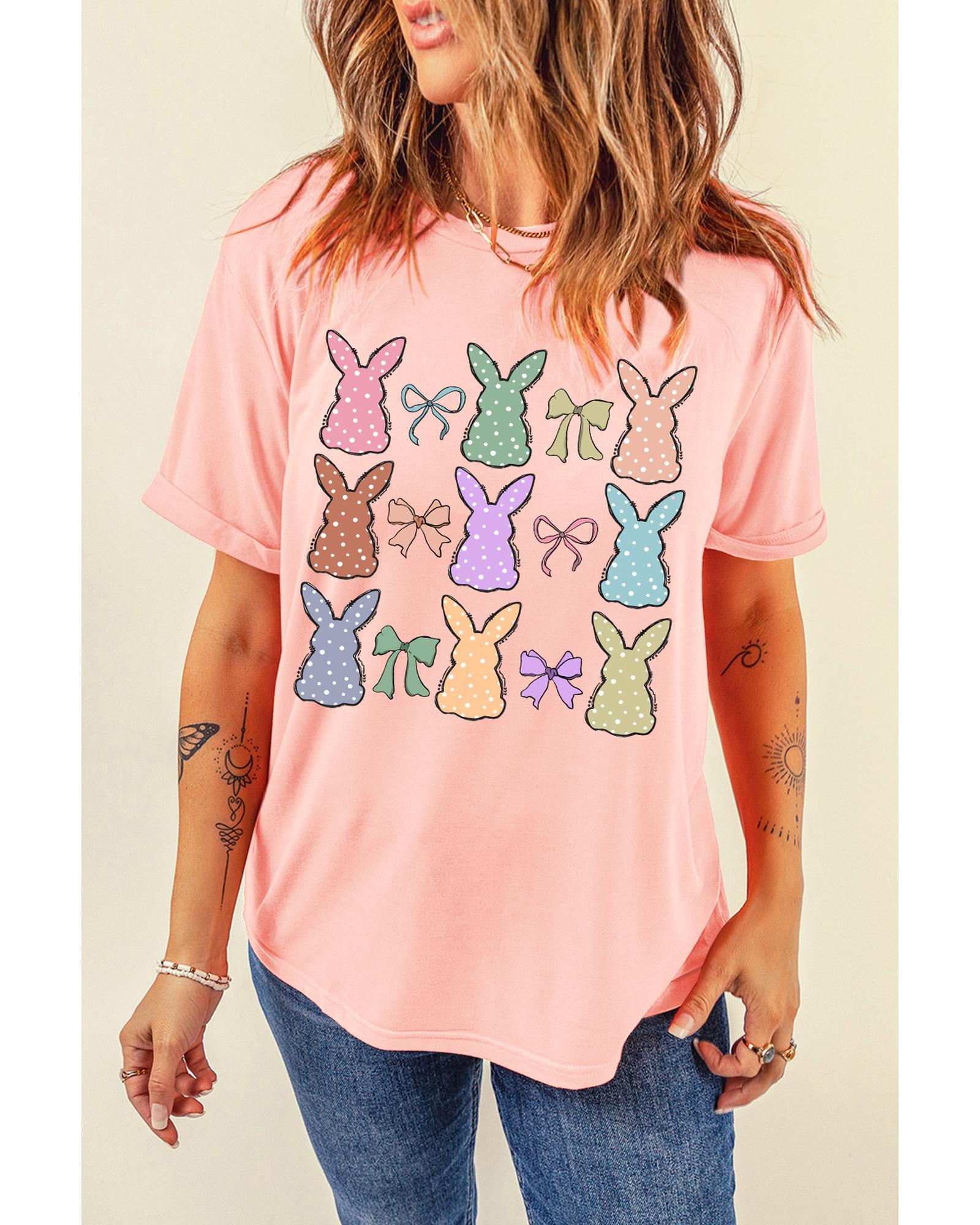 Pink Dotty Bunny Bow Printed Easter Day Fashion T Shirt – M