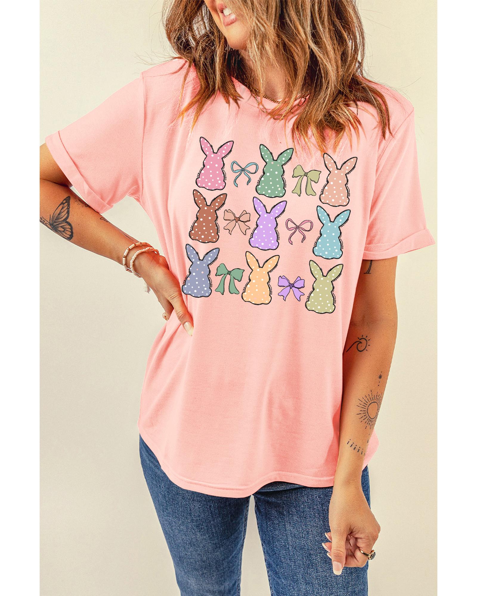 Pink Dotty Bunny Bow Printed Easter Day Fashion T Shirt – XL