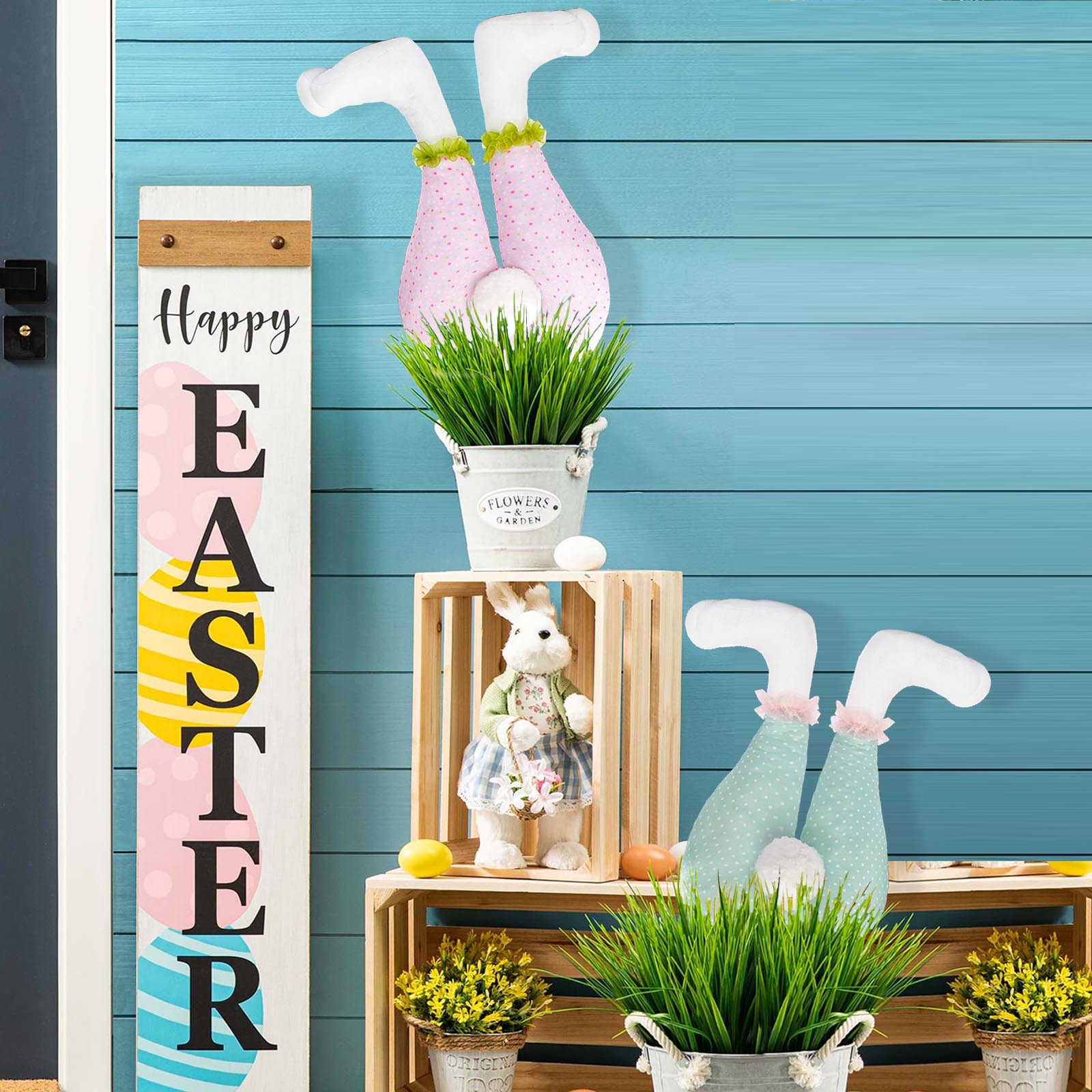 This Easter Bunny Hanging Legs Decoration adds a playful and festive touch to your holiday decor. It features adorable bunny legs with a fluffy tail, designed to hang from wreaths or doors, creating a joyful holiday atmosphere. Made from high-quality fabric and plush materials, it is lightweight and easy to set up or remove, making it an ideal decoration for Easter celebrations.
