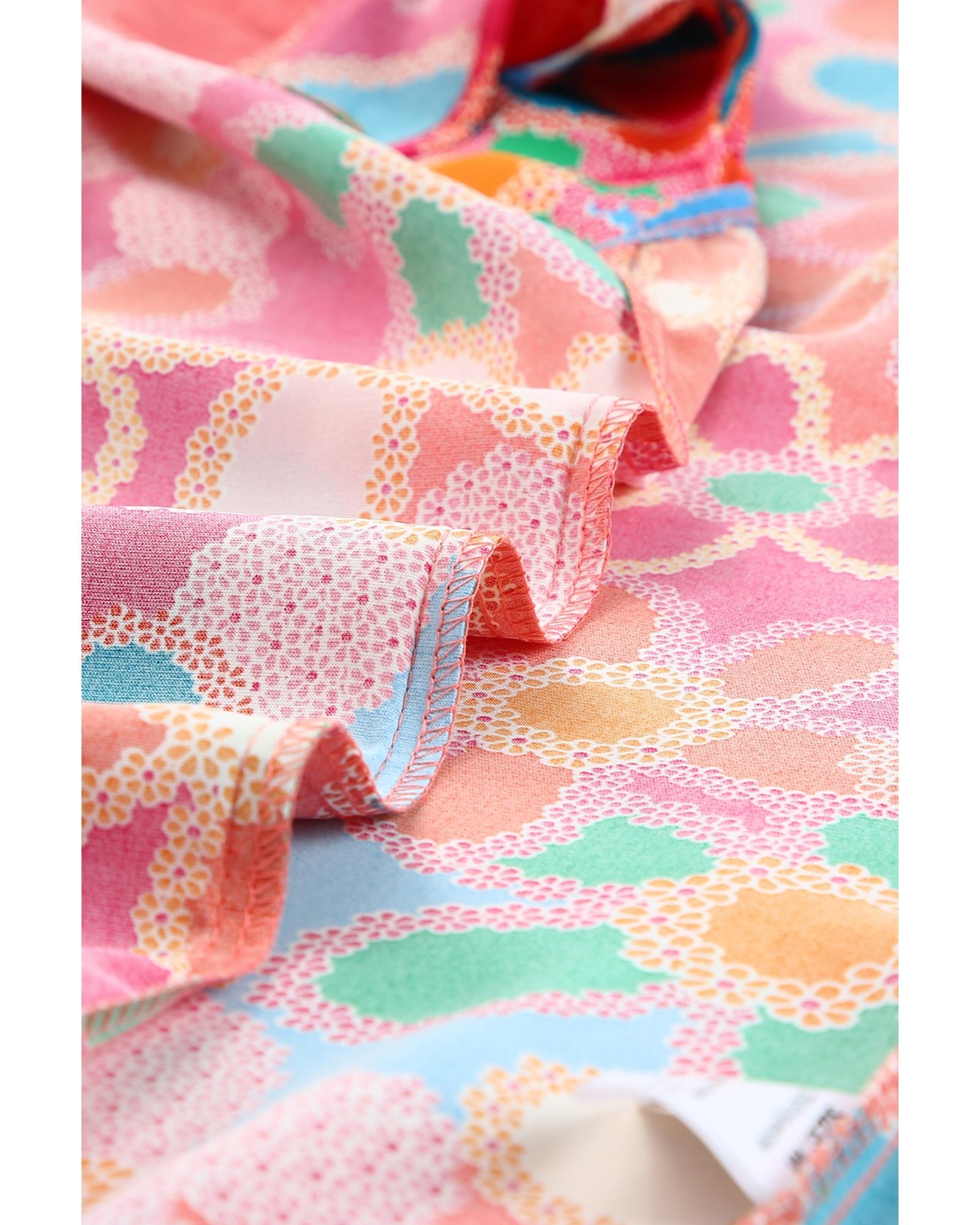 Pink Embroidered Detail Floral Print Ruffle Trim Tank Top – XL