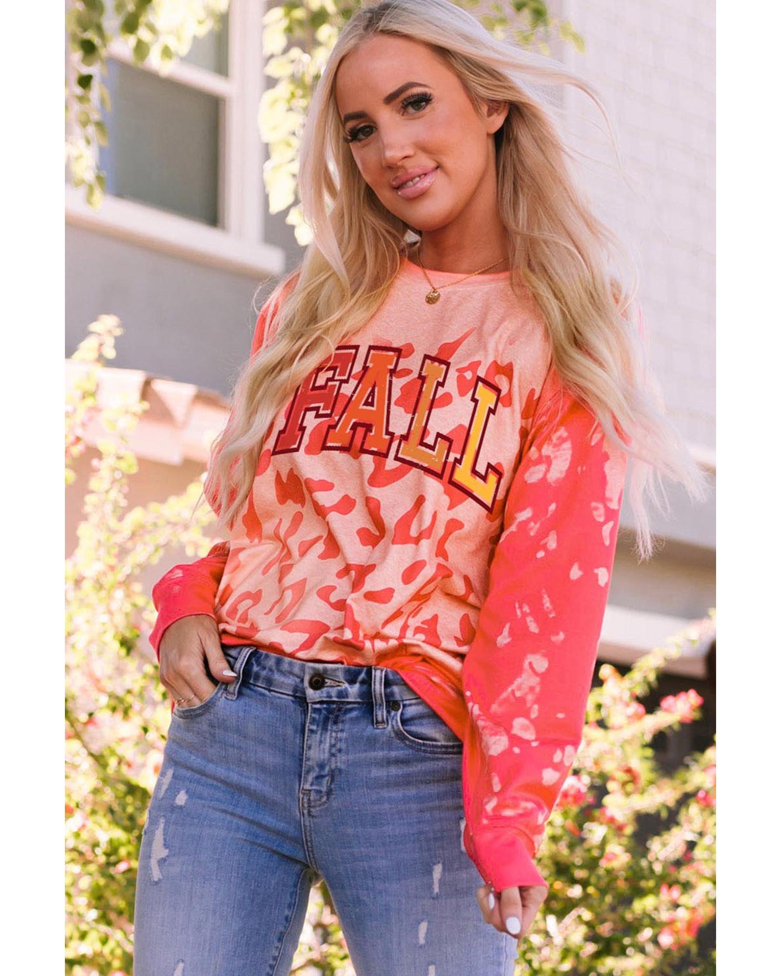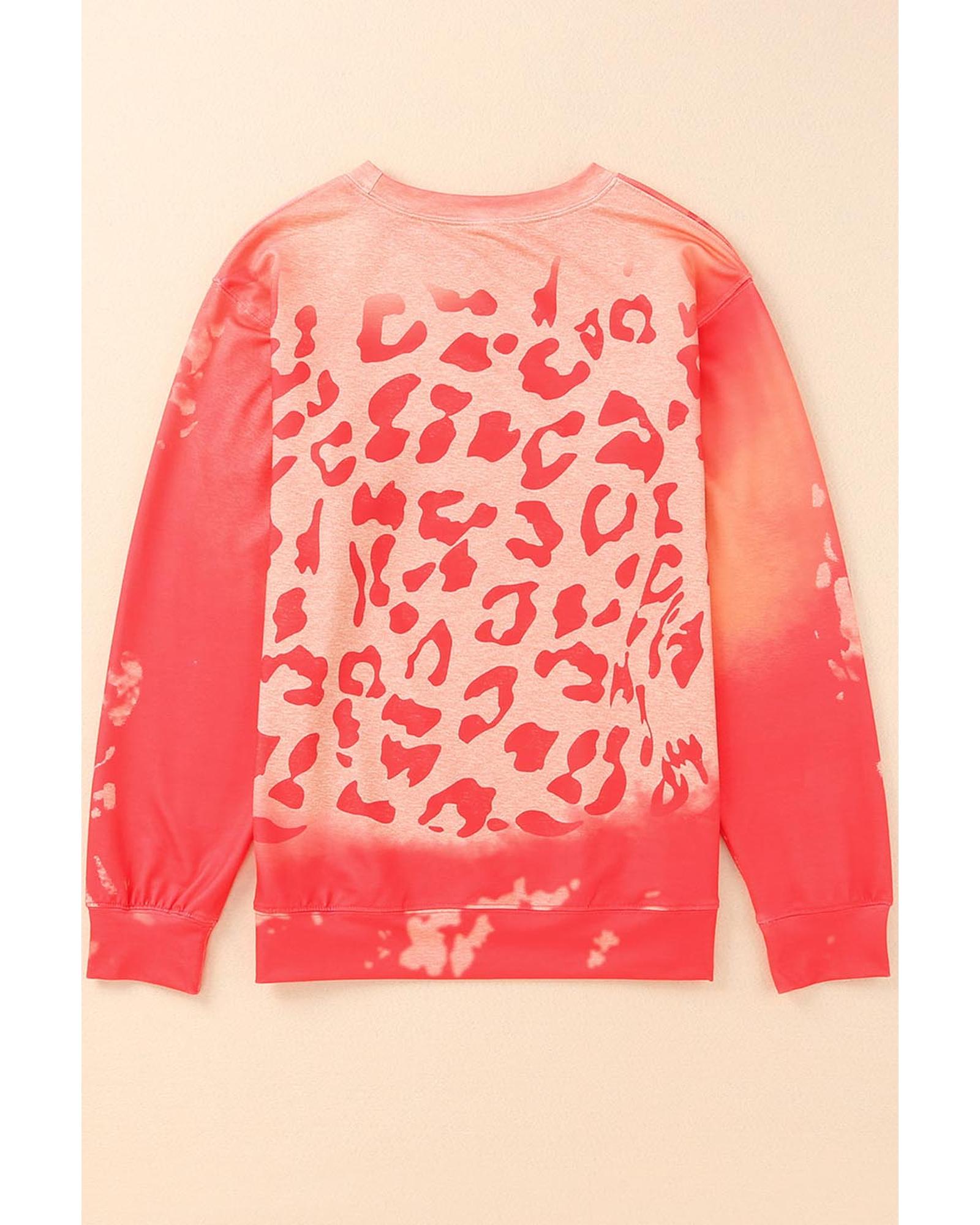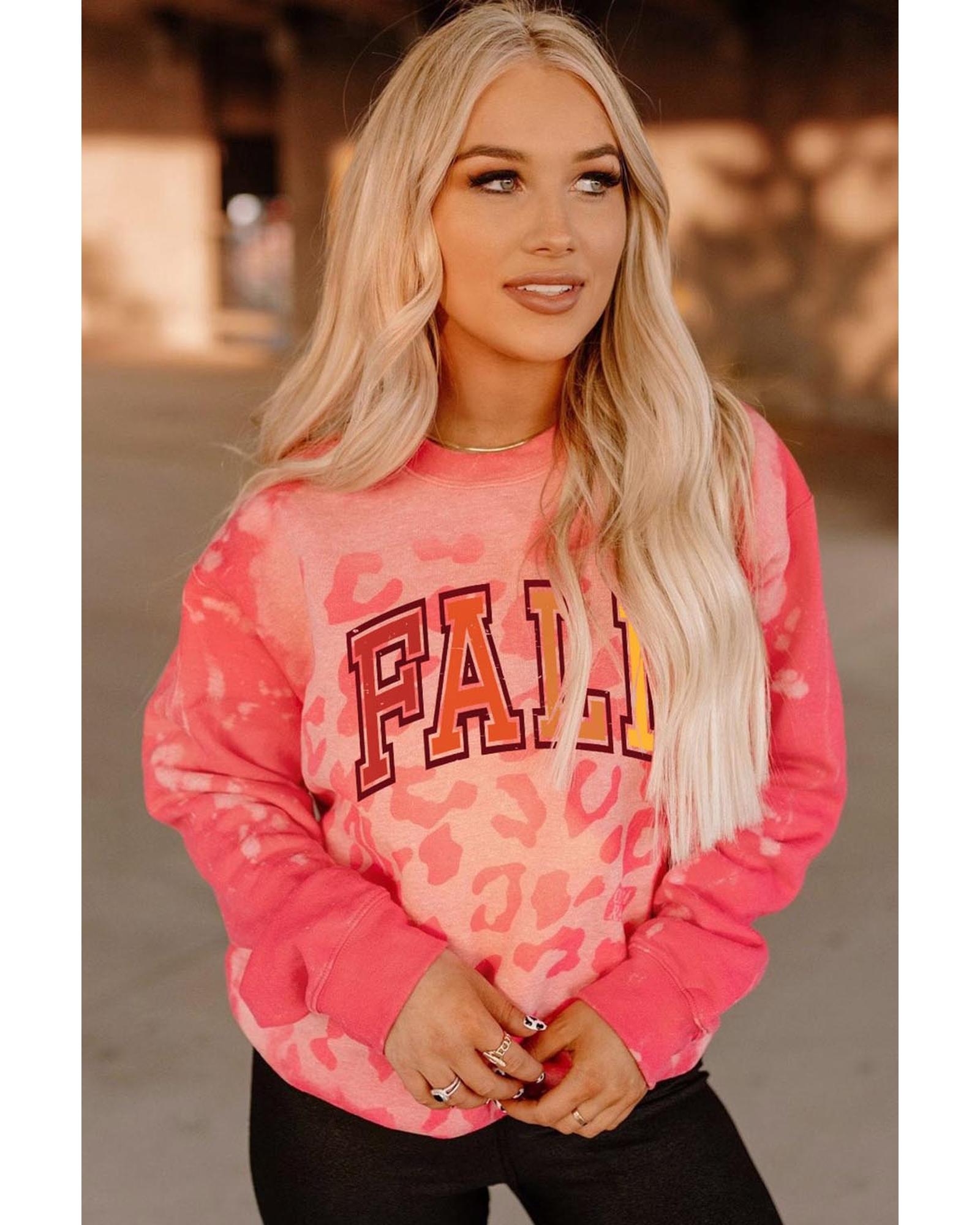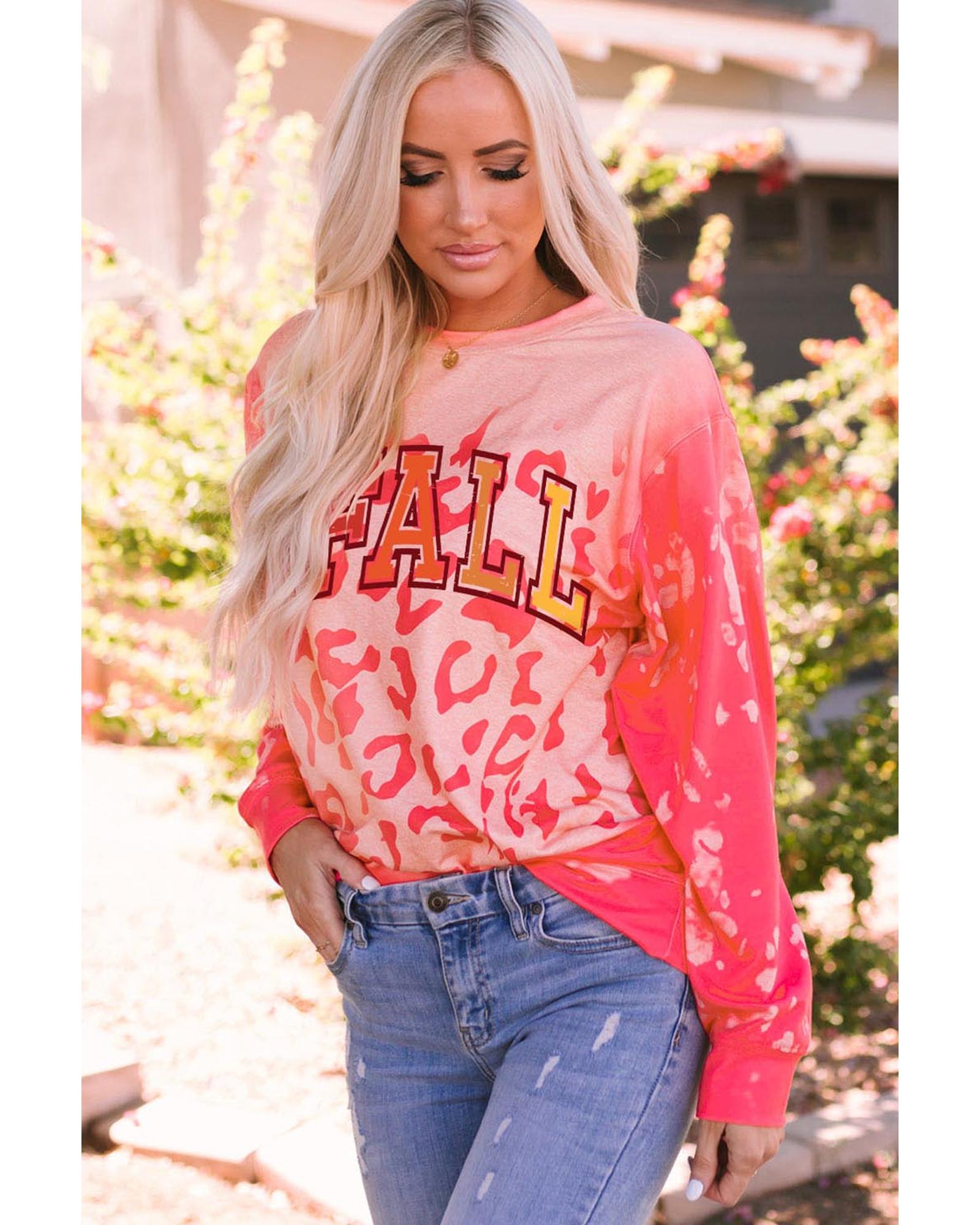 Pink FALL Leopard Print Long Sleeve Pullover Sweatshirt – S