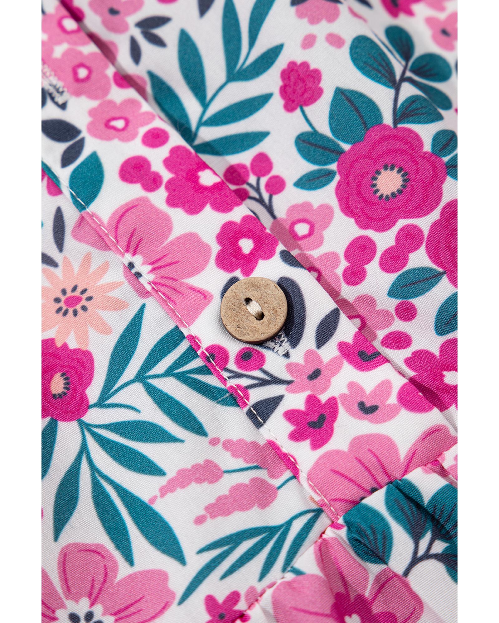 Pink Floral Collared Half Placket Short Sleeve Loose Dress – M