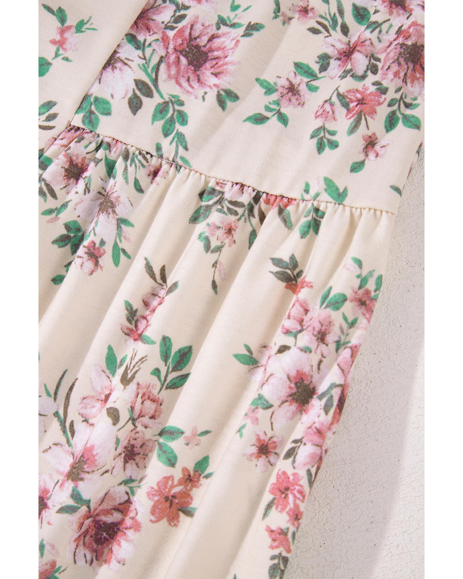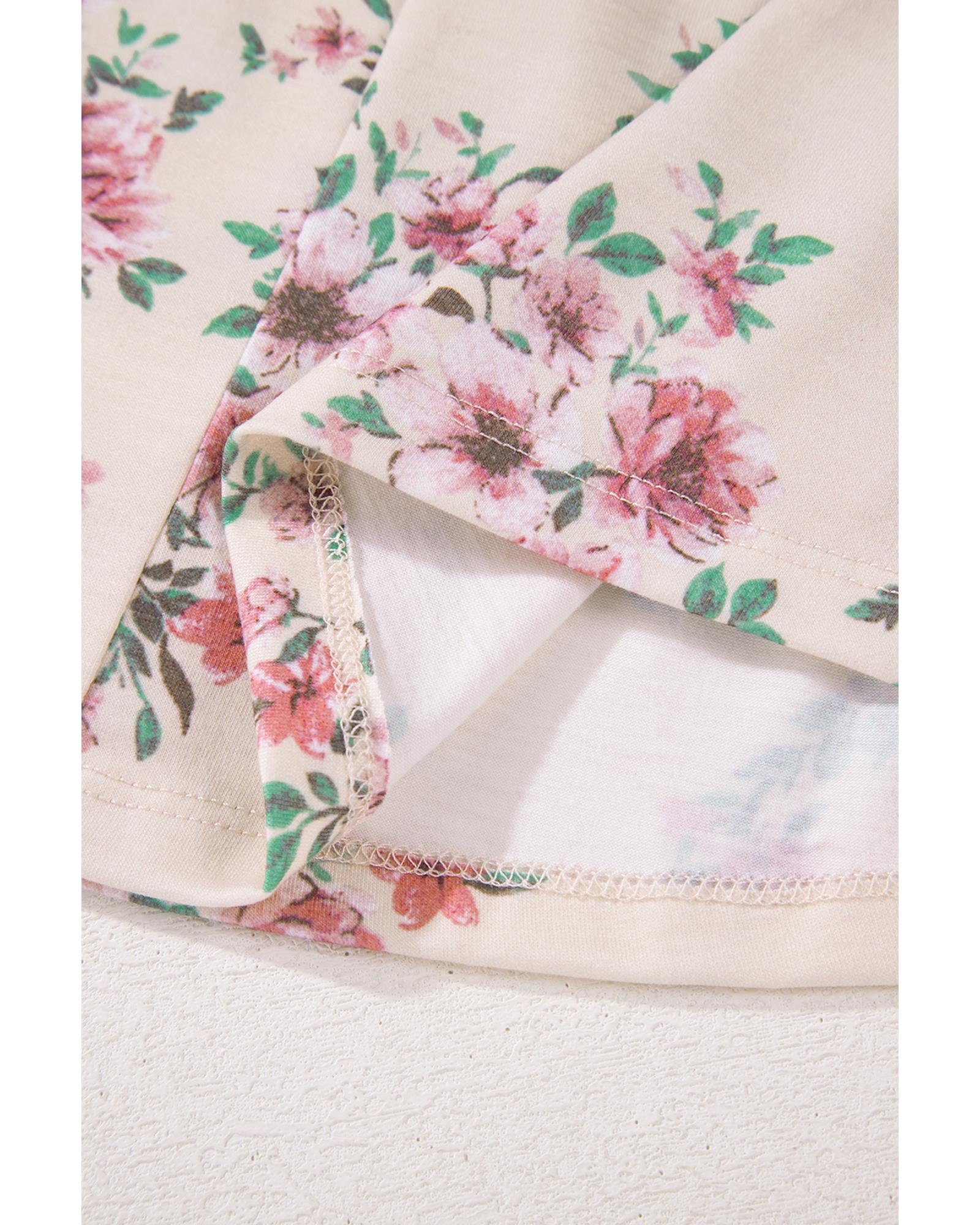 Pink Floral Print Pleated U Neck Loose Fit Blouse – XL
