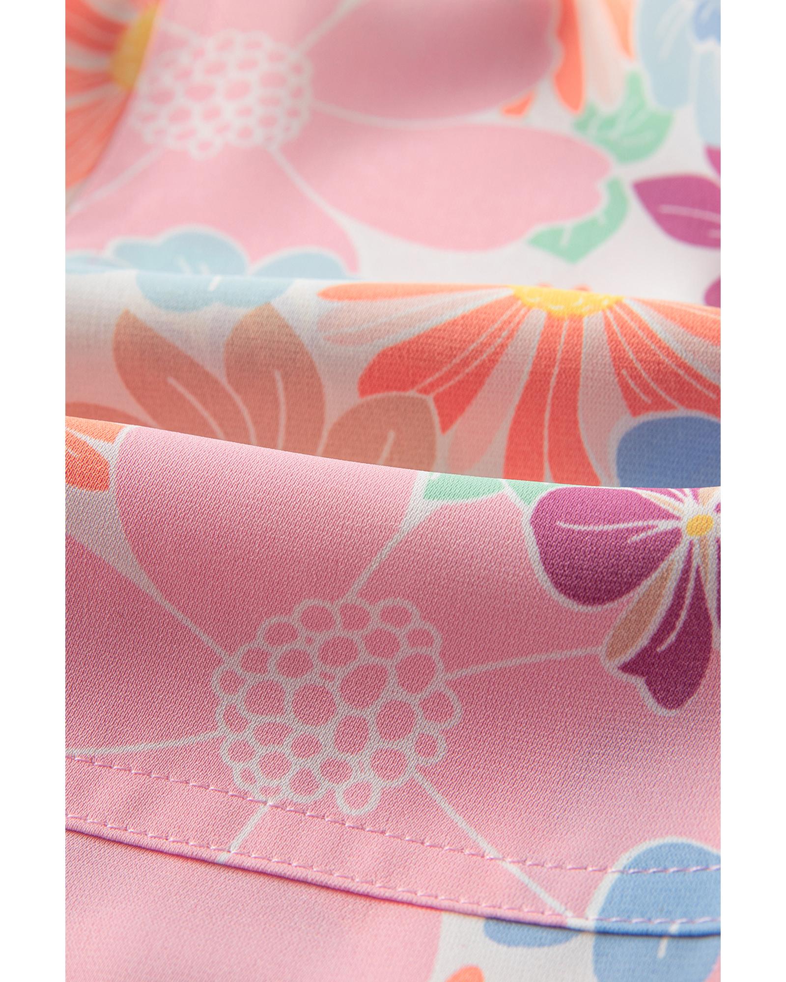 • Pink floral print design with side pockets
