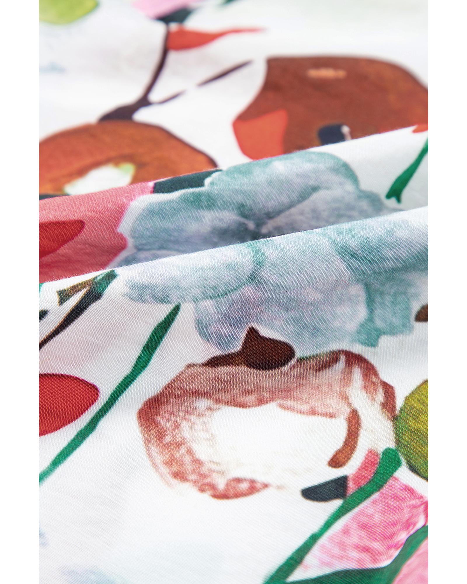 Pink Floral Print Slit V Neck Short Sleeve Blouse – M
