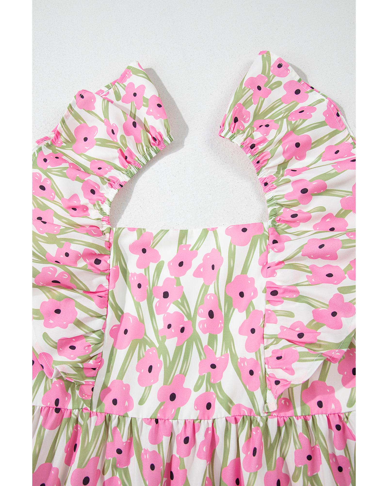 Pink Floral Print Square Neck Ruffled Strap Maxi Dress – XL
