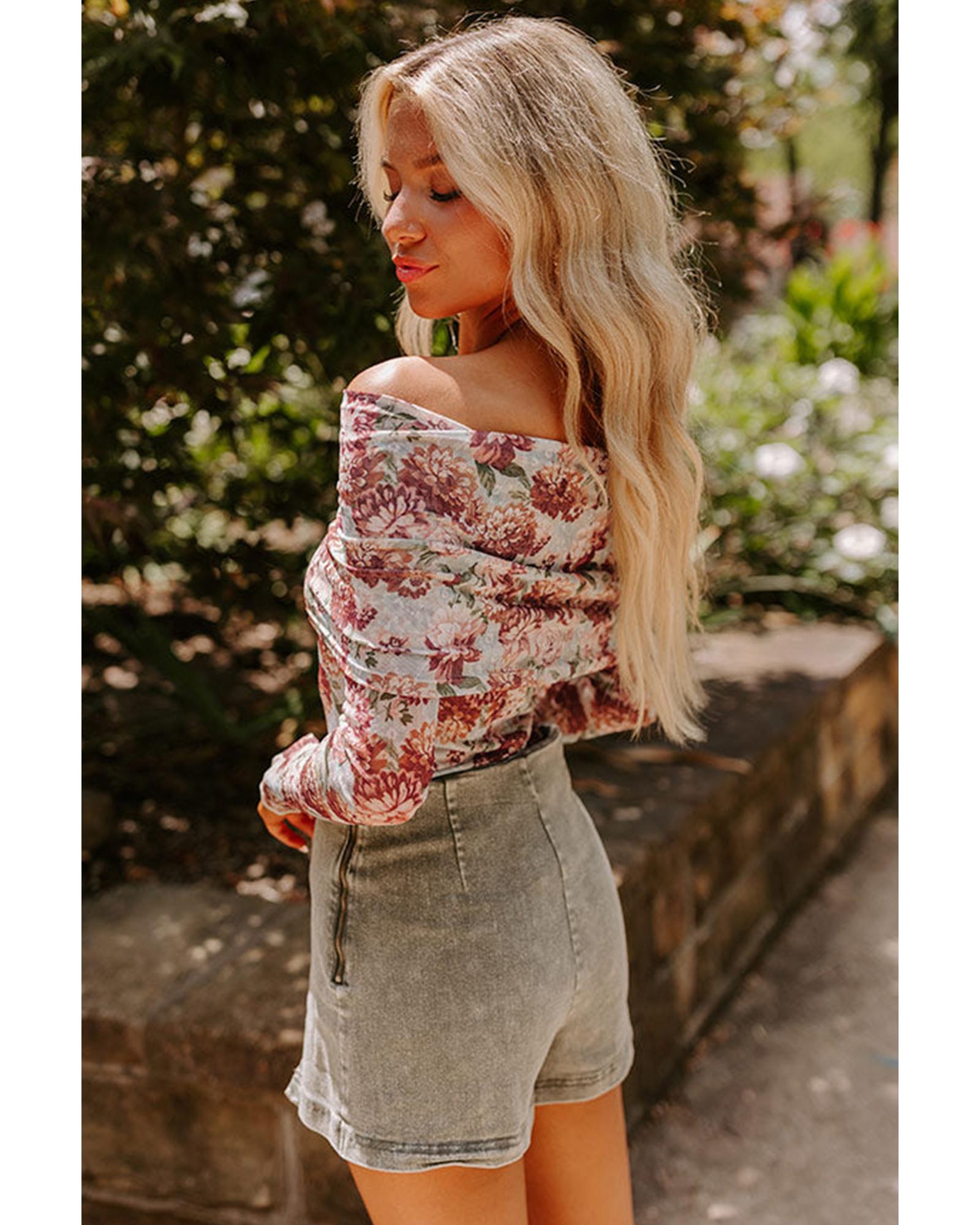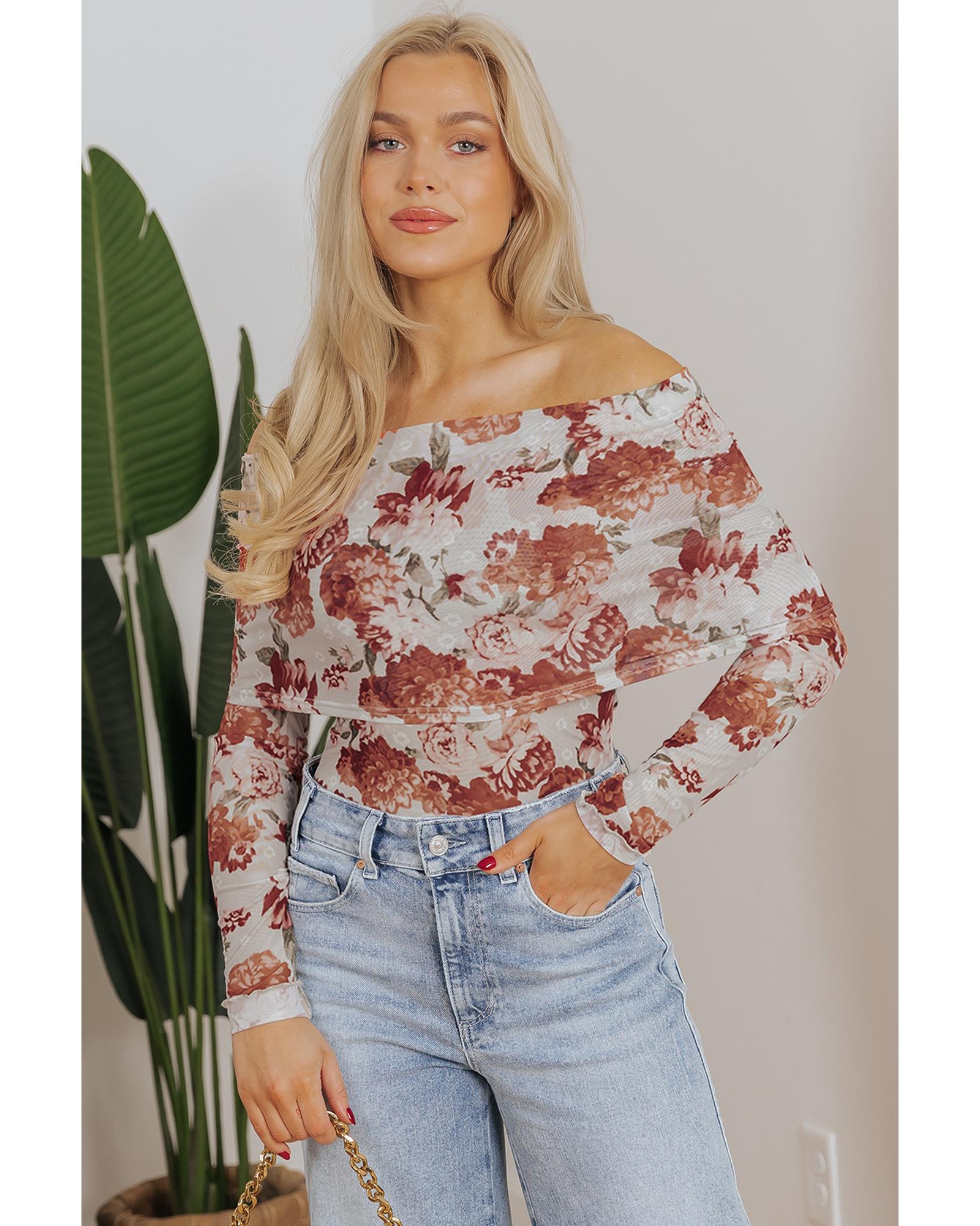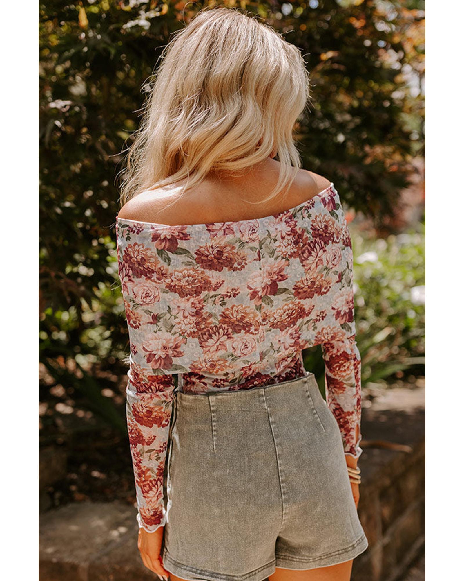 This pink floral printed long sleeve sheath bodysuit offers a stylish and comfortable fit, perfect for everyday wear. Designed with a trendy fitted silhouette, it pairs well with jeans or skirts for versatile styling.
