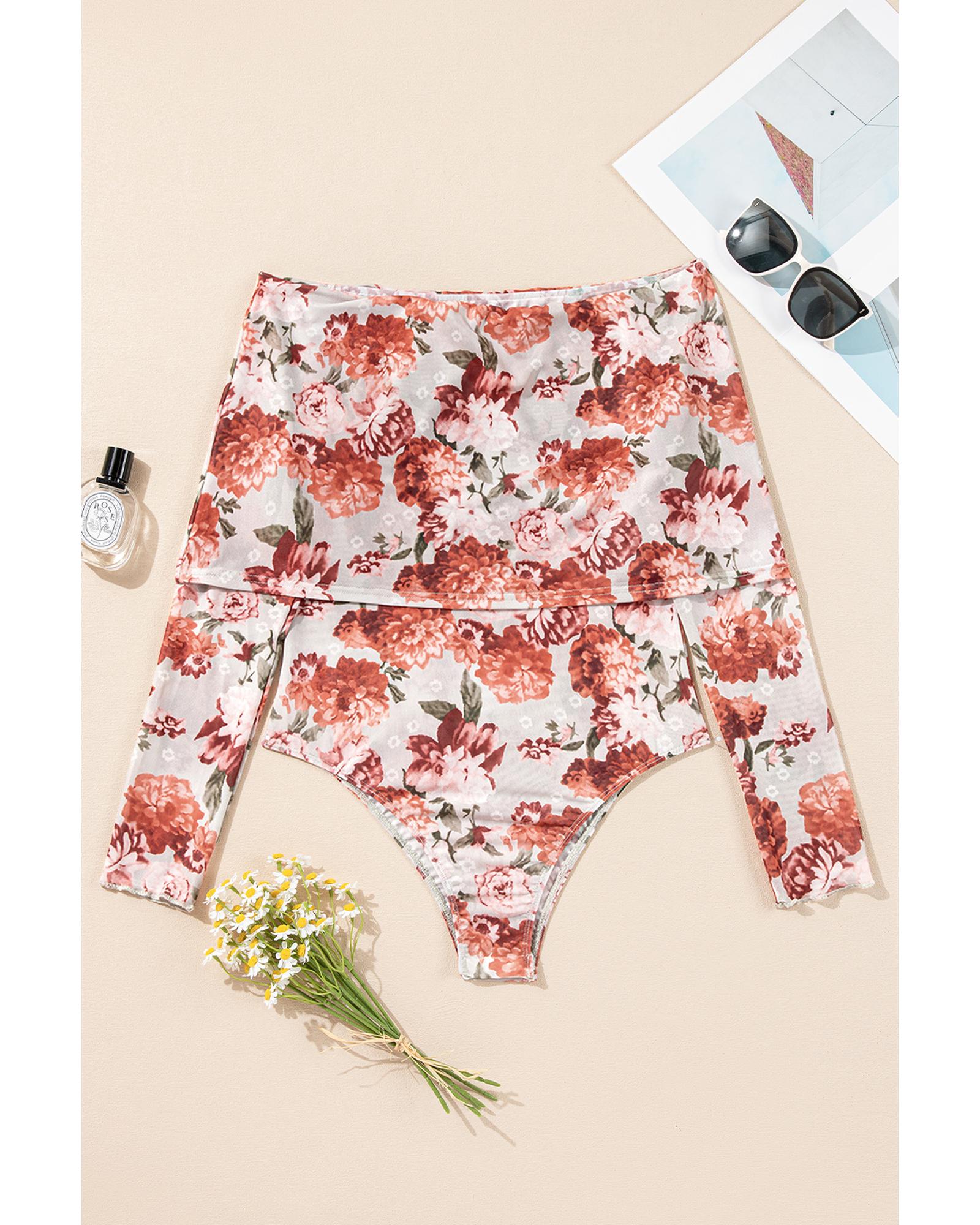Package Content: One pink floral printed long sleeve sheath bodysuit.